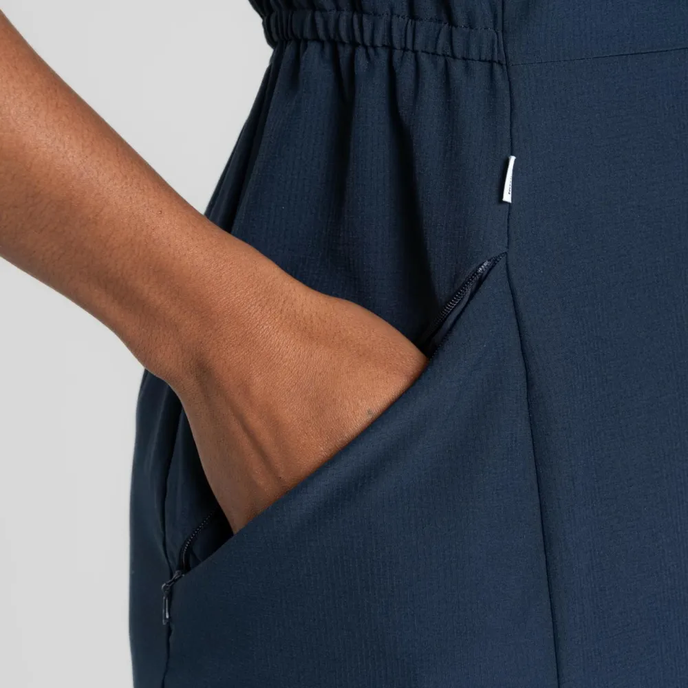 Das NosiLife Pro Dress IV von Craghoppers ist ein praktisches und stilvolles Kleid für Reisen in warme Regionen. Aus leichtem, elastischem Material gefertigt, schützt es zuverlässig mit integriertem, dauerhaftem NosiLife-Insektenschutz und bietet gleichzeitig Geruchshemmung. Der taillierte Schnitt sorgt für eine feminine Silhouette, während zwei Reißverschlusstaschen wichtige Kleinigkeiten sicher verstauen. Die knielange Länge, ein luftiger Schnitt und der halbe Frontreißverschluss sorgen für angenehmen Tragekomfort unterwegs. Dank UPF 50+ ist das Kleid auch ideal für sonnige Tage. Ein funktionales Reise-Essential mit cleverem Design für stilbewusste Abenteurerinnen.