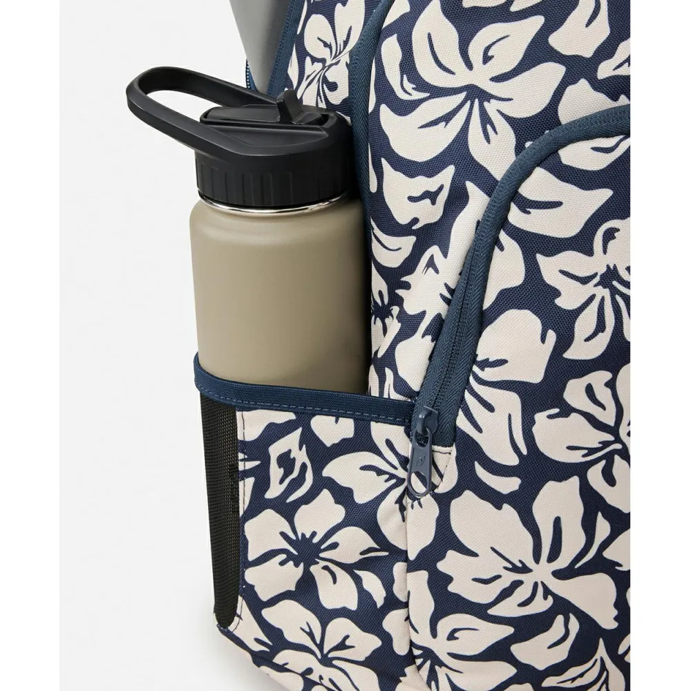 Der Women’s Ozone 30 Backpack Mixed von Rip Curl macht durch das fröhliche Muster schon beim Anschauen gute Laune. Er ist dank der Verarbeitung von recyceltem Polyester nachhaltig. Die gepolsterten Schulterträger sind verstellbar und sorgen damit für höchsten Tragekomfort. Das Frontfach mit Reißverschluss eignet sich für die Aufbewahrung von wichtigen Kleinigkeiten wie Geld, Schlüssel und Handy. Mit dem Tragegriff kannst Du den Rucksack schnell mit der Hand greifen. Er ist ein echter Allrounder für den täglichen Gebrauch.