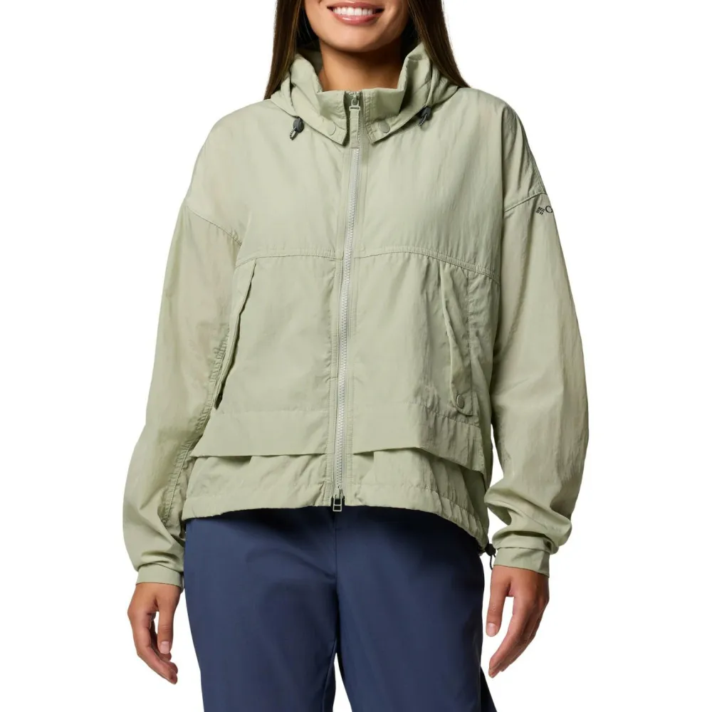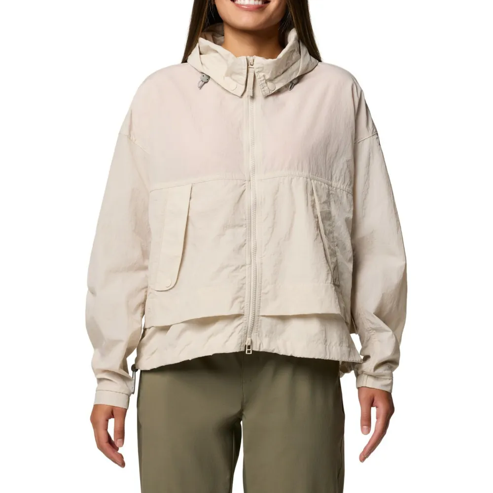 Der Women’s Paracutie II Windbreaker von Columbia schützt bestens vor Wind und Wetter. Dafür stattet Columbia das Nylongewebe mit einer zusätzlich Omni-Shield Behandlung an der Oberfläche aus. So können Regentropfen außen an der Jacke abperlen. Die funktionelle Windjacke verfügt über eine einstellbare Kapuze, die sich bei Bedarf auch bequem im Kragen verstauen lässt. Luftige Ventilationsöffnungen sorgen für angenehmen Luftaustausch. Die Jacke ist mit elastischen Bündchen und einem Kordelzug im Jackensaum ausgestattet. Zwei praktische Taschen mit Reißverschluss ergänzen den leichten Windbreaker.