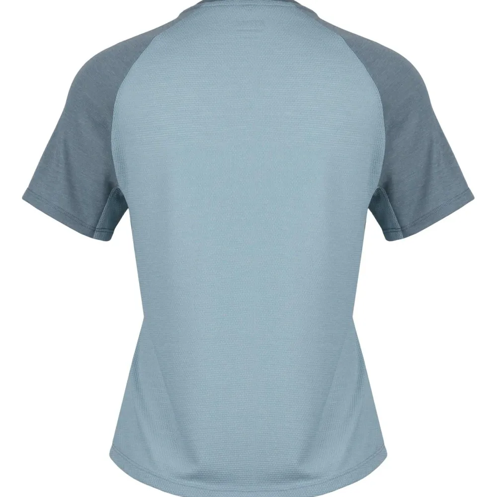 Das Stoic Women’s PerformanceMerino SpikenSt. Shirt II kombiniert die Vorzüge von Merinowolle und Kunstfaser mit der innovativen DriRelease-Technologie. Merinowolle ist bekannt für ihre Weichheit und ihre Fähigkeit, die Körpertemperatur zu regulieren, während Kunstfasern für ihre Strapazierfähigkeit geschätzt werden. Die DriRelease-Technologie sorgt dafür, dass Feuchtigkeit effizient von der Haut weggeleitet wird und schnell verdunstet. Diese Materialkombination hält Dich trocken und komfortabel, selbst bei intensiven sportlichen Aktivitäten wie Wandern oder Trekking.