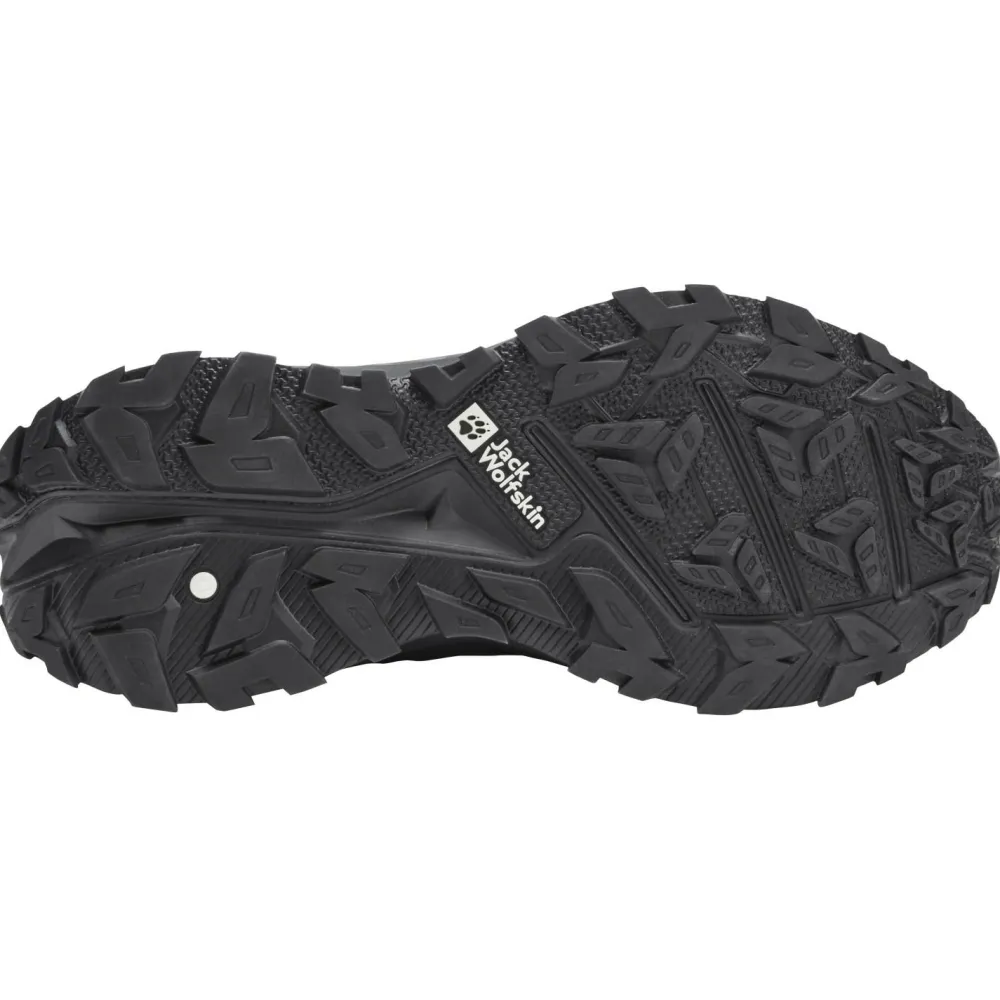 Gerade auf alpinen Pfaden zeigt der Schuh seine Stärken: Die griffige Gummi-Laufsohle gibt Dir Halt auf rutschigem Untergrund, egal ob nach einem Regenschauer oder beim Überqueren von Geröllfeldern. Die stoßdämpfende EVA-Zwischensohle entlastet Deine Gelenke spürbar bei jedem Schritt. Das widerstandsfähige und leichte Synthetik-Material macht den Schuh zur idealen Wahl für anspruchsvolle Touren – ganz im Sinne von Jack Wolfskins Motto: „Engineered in Germany, proven in the Wild.“