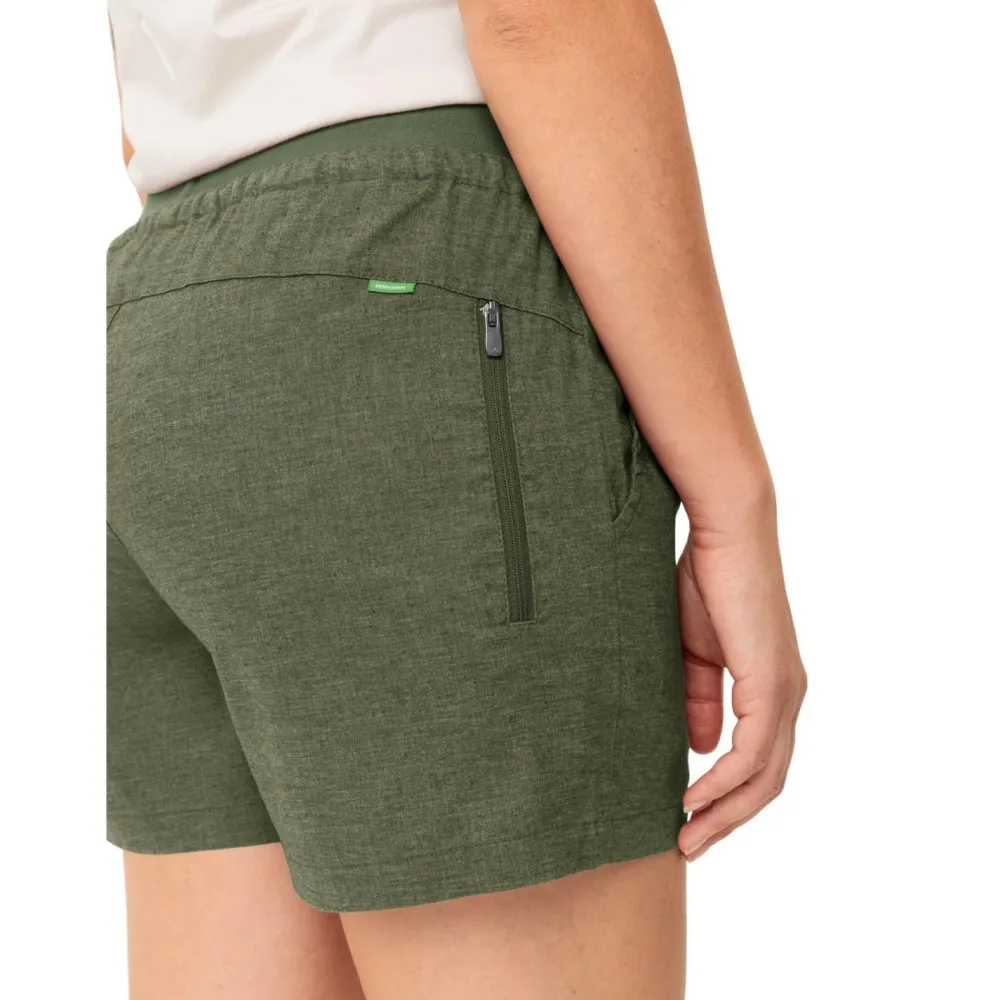 Ein elastischer Hosenbund mit integriertem Kordelzug gehört ebenso zur Vaude Shorts, wie zwei offene Fronttaschen und eine Gesäßtasche mit Reißverschluss.