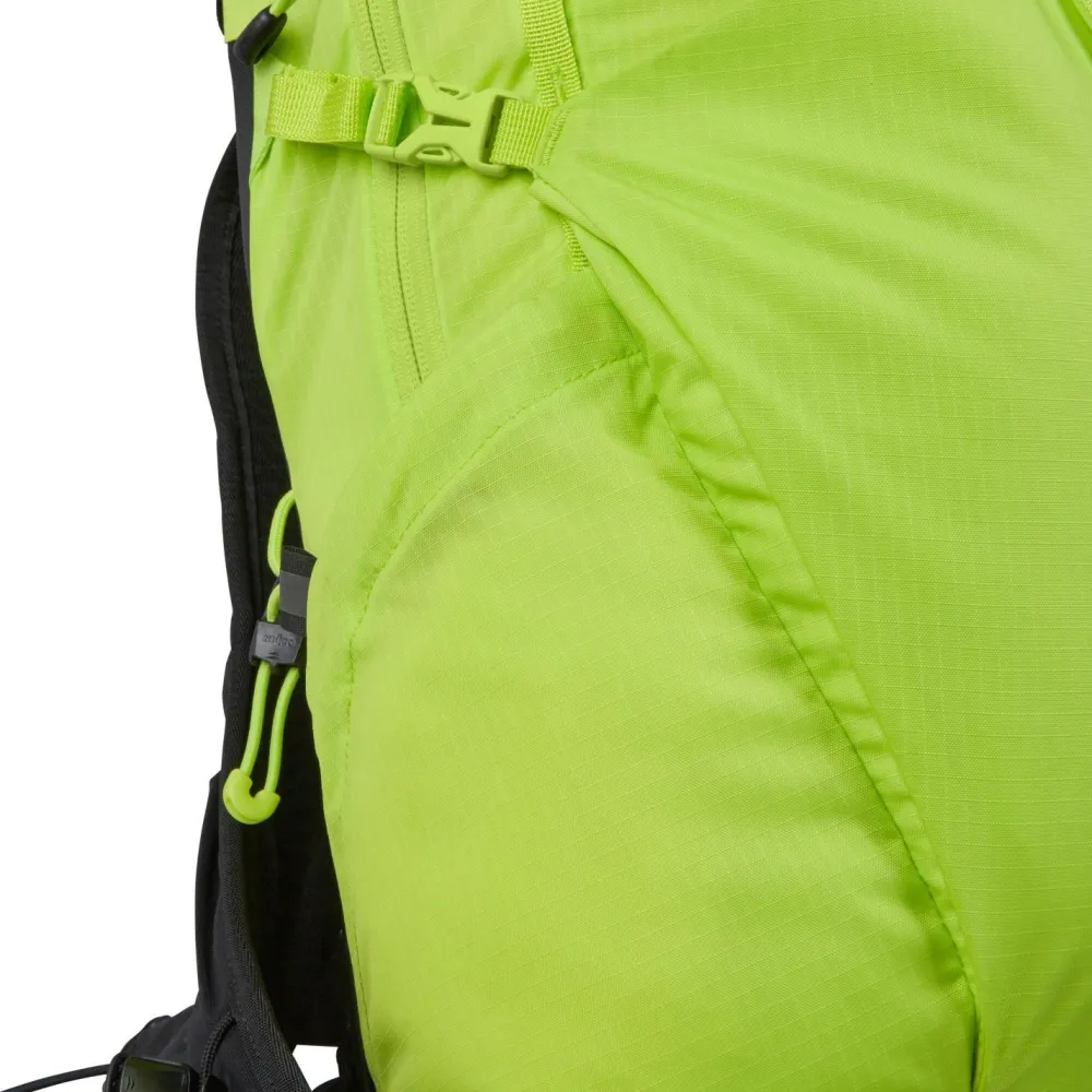 Die strapazierfähige YKK-Reißverschlussöffnung ermöglicht schnellen Zugriff auf Deine Ausrüstung. Zusätzlich gibt es ein elastisches Frontfach, zwei erweiterbare seitliche Flaschenhalterungen sowie zwei Reißverschlusstaschen am Gürtel für noch mehr Stauraum. Komfortabel anzupassen sind die Brust- und Hüftgurte sowie das Kompressionssystem. Der Rucksack ist auch mit einer Trinkblase kompatibel und besteht aus 100 % recyceltem Seawastex®-Material, das aus Abfällen des Ozeans hergestellt wurde.
