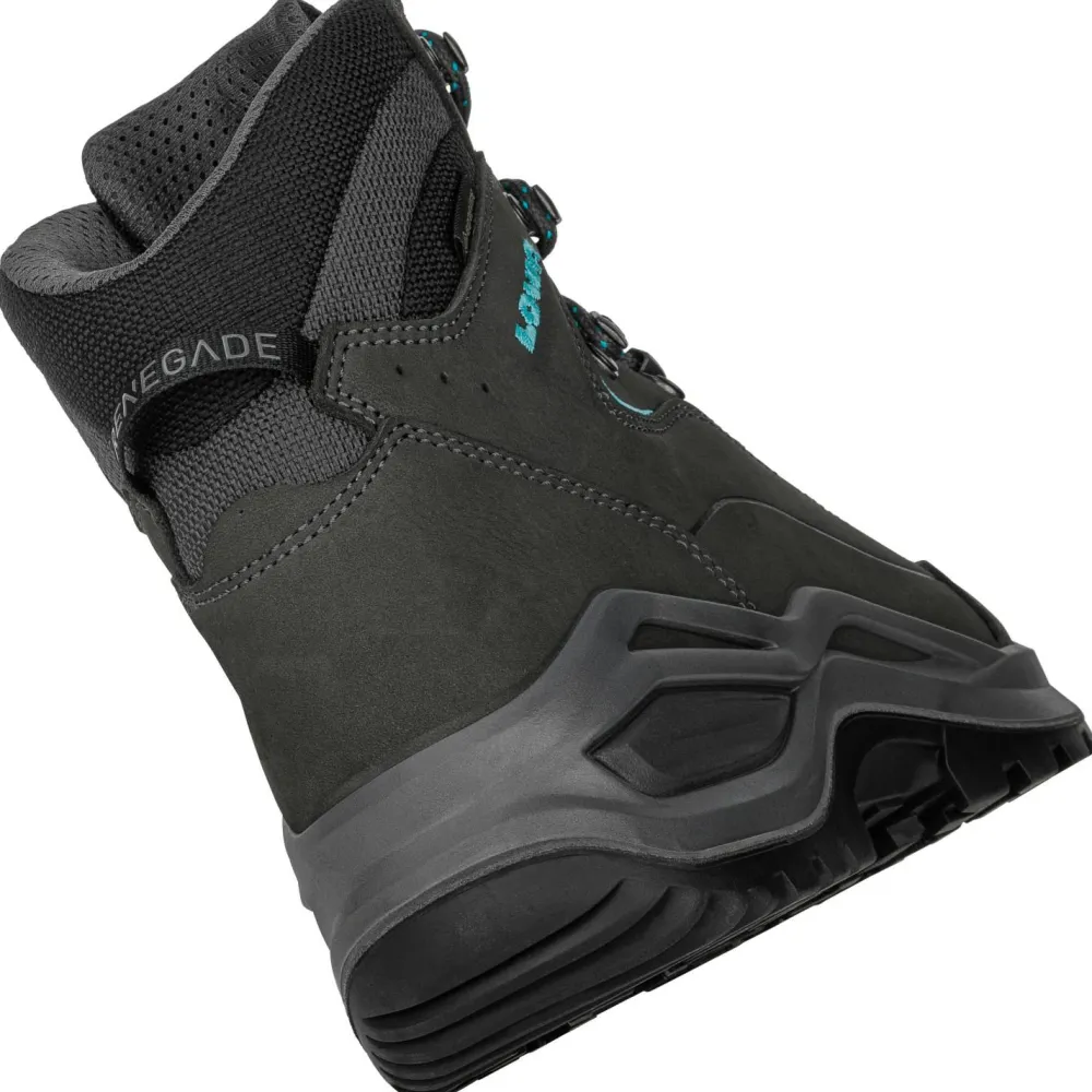 Deine Gipfel erklimmst Du mit den Wanderschuhen Women’s Renegade GTX Mid Slim von Lowa! Dank GORE-TEX Membran sind sie wasserdicht und atmungsaktiv. Das Leder als Obermaterial bietet Langlebigkeit. Mit den Verstärkungen an Fersen und Zehen hast Du sicheren Schutz im Gelände. Die Vibram Laufsohle mit ihren multidirektionalen Stollen bietet einen sicheren Grip im Gelände. Dank 2-Zonen-Schnürung kannst Du den Schuh optimal anpassen. Ein Allrounder für Tagestouren!