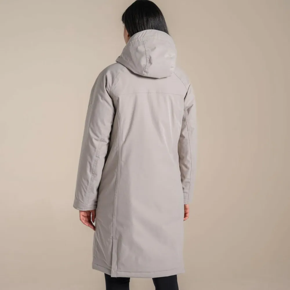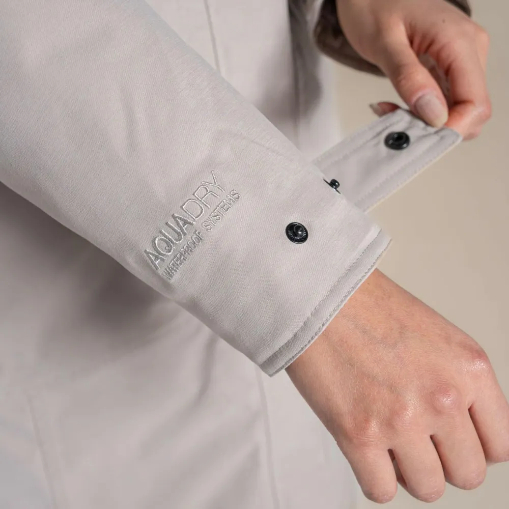 Der Outdoor-Mantel Women’s Rosalind II Jacket von Craghoppers aus recyceltem Twill-Polyester bietet Dir zuverlässigen Schutz bei nassem Wetter, ohne dass Du ins Schwitzen kommst. Die AquaDry-Membran und die vollständig verschweißten Nähte sorgen für eine Wasserdichtigkeit von 25.000 mm. Gleichzeitig ermöglicht die Atmungsaktivität von 20.000 g/m²/24h ein angenehmes Körperklima, selbst bei Bewegung. Die pflanzenbasierte H2OShield-Imprägnierung ist fluorcarbonfrei und damit eine umweltfreundliche Wahl für alle, die Wert auf Nachhaltigkeit legen. Die durchdachte Verarbeitung und das schlichte Design machen ihn zu einem vielseitigen Begleiter für Alltag und Freizeit.