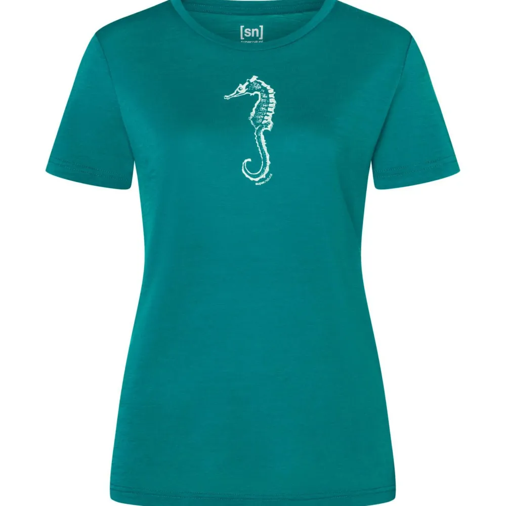 Mit dem Women’s Sea Horse Tee von super.natural hast Du ein vielseitiges Merinoshirt in Deinem Kleiderschrank, das mit atmungsaktiver und geruchshemmender Materialmix für angenehmen Komfort sorgt. Das lässige Kurzarmshirt punktet mit einem stylischen Frontprint und bietet dank Stretch-Anteil optimale Bewegungsfreiheit – egal, ob beim Shopping oder auf dem Weg ins Café. Die Marke super.natural steht für funktionale Kleidung im puristischen Design, die Deinen Alltag auf unkomplizierte Weise begleitet.