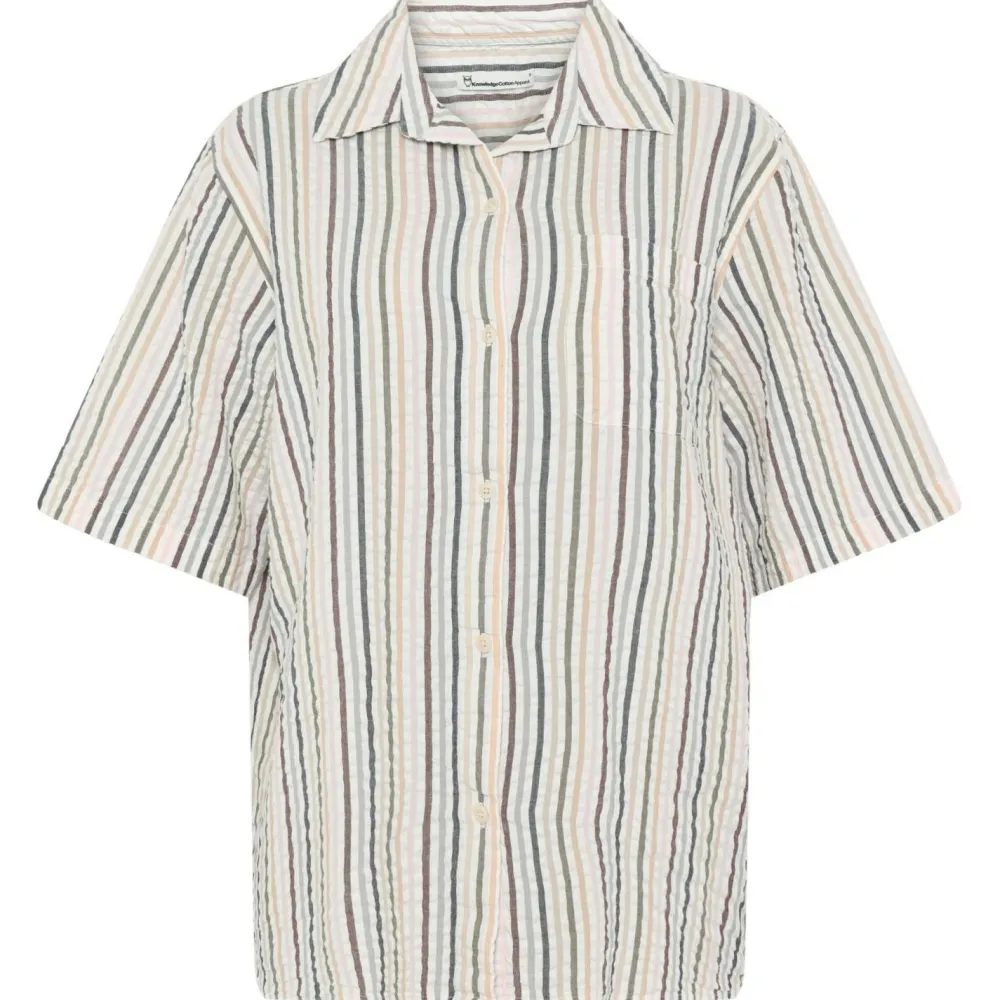 Die Women’s Seersucker Stripe Short Sleeved Shirt von KnowledgeCotton Apparel eignet sich für warme Tage in Deinem Alltag. Sie ist atmungsaktiv und schmiegt sich besonders angenehm an Deine Haut an. Die Materialzusammensetzung besteht aus hochwertiger Baumwolle. Das Streifenmuster verbreitet gute Laune.