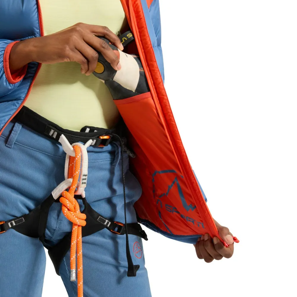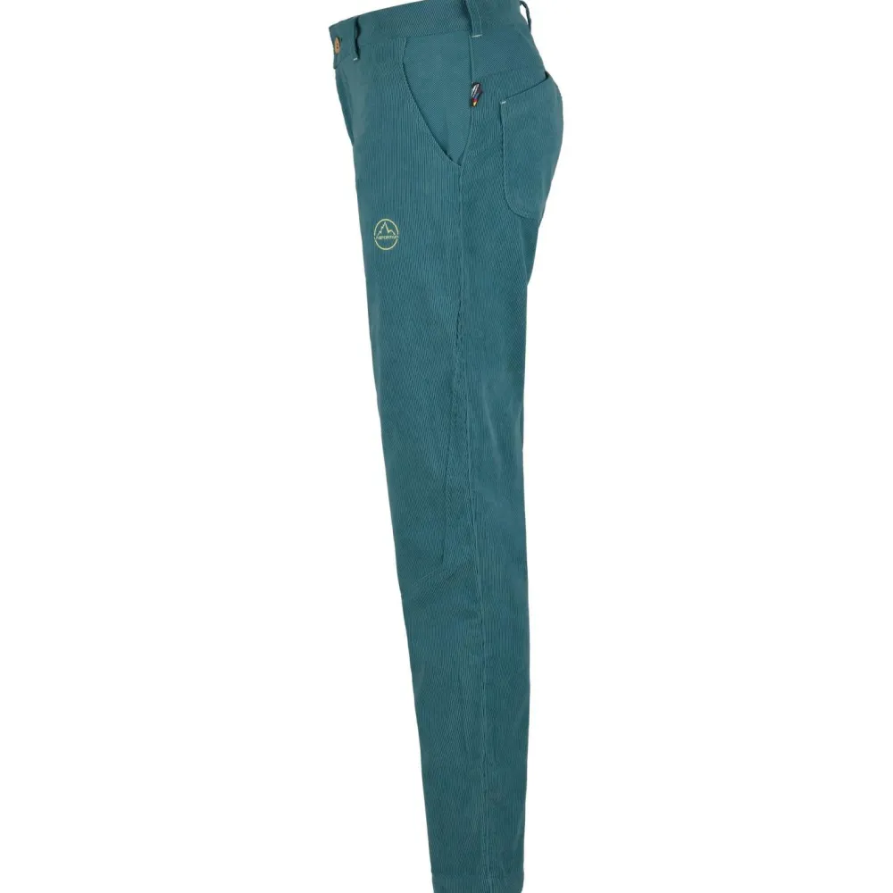 Die Women’s Setter Pant von La Sportiva ist eine besonders weiche und warme Cordhose zum Klettern im Winter. Die vielen durchdachten Features sorgen für optimalen Komfort und Bewegungsfreiheit. Das Gewebe verleiht zudem einen sportlichen und angenehmen Look, der jederzeit überzeugen kann. Der Hosenbund ist mit einem integrierten Gürtel versehen. Somit lässt sich die Hose perfekt anpassen, damit an der Wand nichts ins Rutschen kommt. Der Druckknopf ist aus nachhaltiger Kokosfaser und wird mit einem Reißverschluss Hosenschlitz ergänzt. In den beiden Eingreiftaschen an der Front der Women’s Setter Pant und den beiden Gesäßtaschen lassen sich kleine Gegenstände sinnvoll und sicher verstauen.