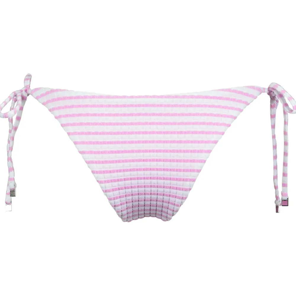 Die Women’s Sorrentostripe Tie Side Rio des australischen Labels Seafolly erinnert mit ihrem Retro-Streifen-Look und dem Frottier-Jacquard-Stoff an heiße Sommertage unter der italienischen Sonne. Die Bikinihose ist eher niedrig geschnitten und wird an der Seite gebunden. Hingucker sind feminine Details wie Rüschen und kleine metallische Verzierungen.