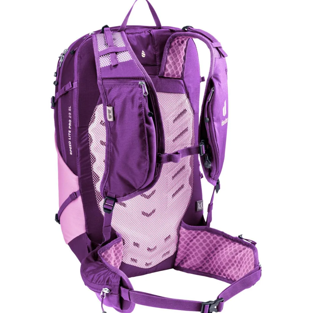 Breite, ergonomisch geformte und stark durchlüftete Schulterträger mit anschmiegsamen Hüftflossen sorgen für einen körpernahen und stabilen Sitz. Die Last wird ideal verteilt, der Druck auf den Schultern vermindert und der Rücken entlastet. Hinzu kommt eine übersichtliche Platzierung und Einteilung der Taschen und Befestigungsschlaufen. Dadurch garantiert der Speed Lite Pro SL 23, dass alle Energie voll und ganz fürs Wandern zur Verfügung steht!