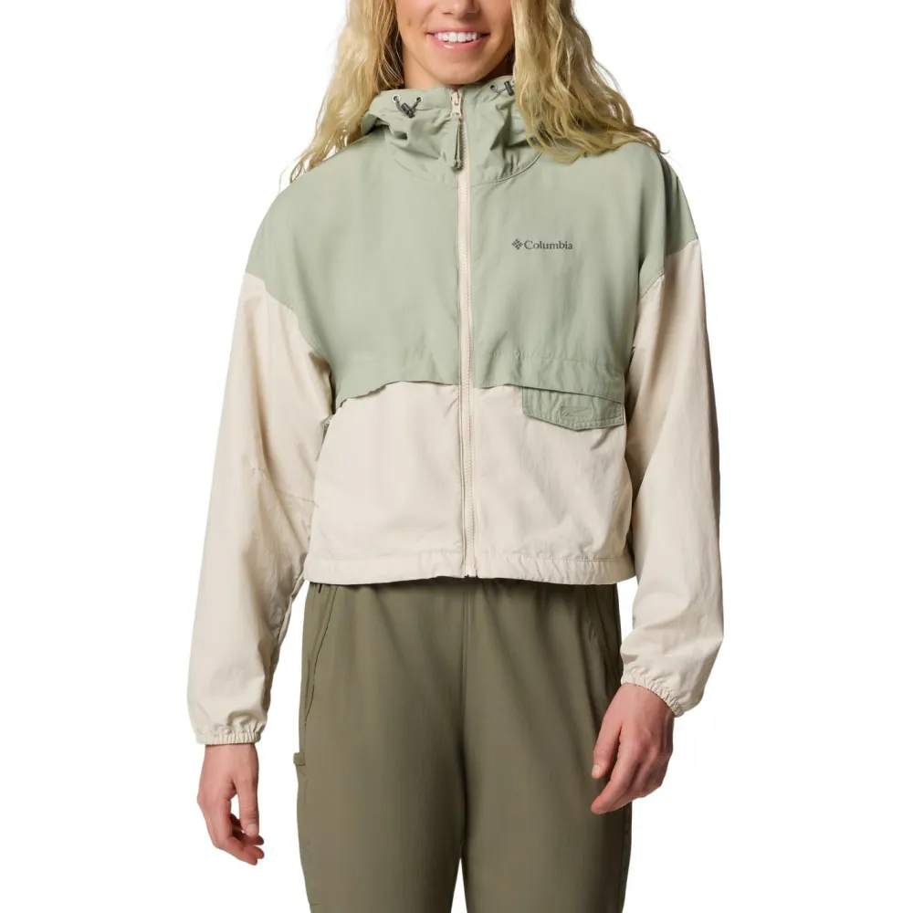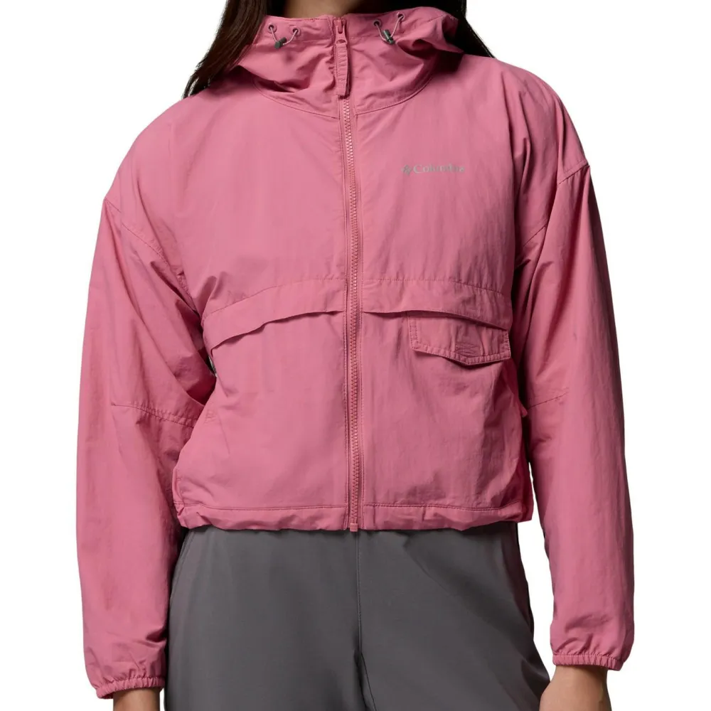 Mit modischem Cropped Cut ist der Women’s Spire Valley Cropped Windbreaker von Columbia nicht nur funktionell, sondern auch in Sachen Design, ganz weit vorne. Die Windjacke schützt bestens vor Wind und hält den Wind mit hohem Kragen und Kapuze auch zuverlässig von Kopf und Hals fern. Jackensaum und Kapuze lassen sich per Kordelzug individuell anpassen, während die Ärmelbündchen elastisch gehalten sind. Der Columbia Windbreaker verfügt am Rücken über eine komfortable Ventilationsöffnung und schützt mit seiner Omni-Shield Behandlung auch gut vor Regen und Nässe.