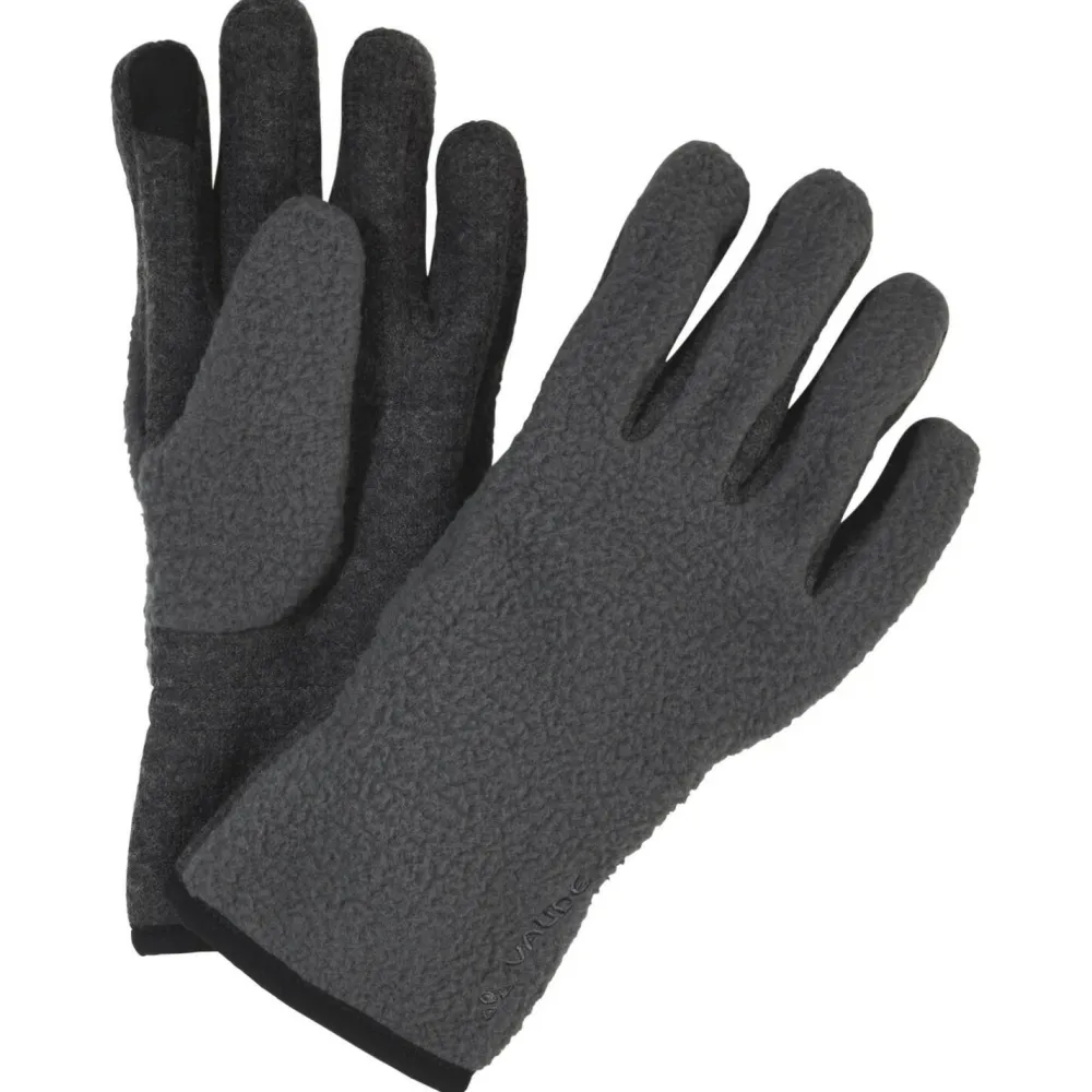 Die Women’s Tinshan Gloves V von Vaude sind warme und weiche Wollmix-Handschuhe für lange Wintertage im Freien. Ihr Futter ist aus aus recyceltem Polyester hergestellt und wird ergänzt von einem weichen Teddy-Fleece in Kombination mit wolligem Softshell-Material. Dieser Mix sorgt nicht nur für Wärme, sondern auch für Wetterfestigkeit und wohliges Tragegefühl. Die langen Bündchen mit den Gummibändern an den Handgelenken sorgen derweil für den jederzeit guten Sitz. Die Daumen und Zeigefinger sind mit Fingerspitzen ausgestattet, die die Touchscreen-Bedienung problemlos möglich machen. Kleine aber feine Design-Extras wie das gestickte Logo machen den tollen Eindruck der Tinshan Handschuhe perfekt!