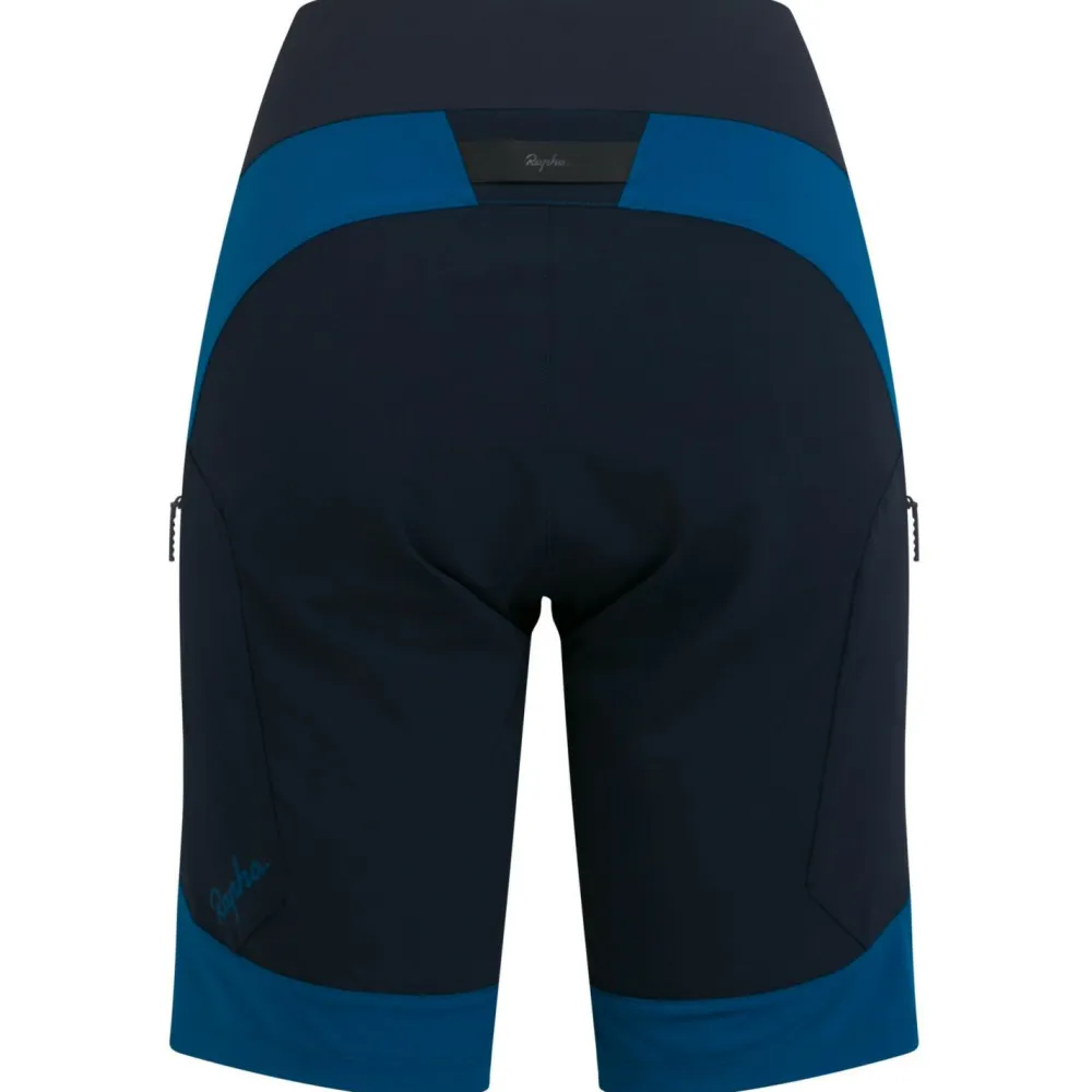 Du kannst die Shorts entweder mit oder ohne Kniepolster darunter tragen. Der Gesäßbereich ist verstärkt und daher besonders abriebfest. Zwei ergonomisch angebrachte Reißverschlusstaschen an den Oberschenkeln bieten ausreichend Platz für Riegel und andere Kleinigkeiten. Die beiden zusätzlichen Fronttaschen und der lässige Rapha-Schriftzug auf der linken Seite machen die Hose auch abseits des Bikens zu einer gelungenen Wahl!