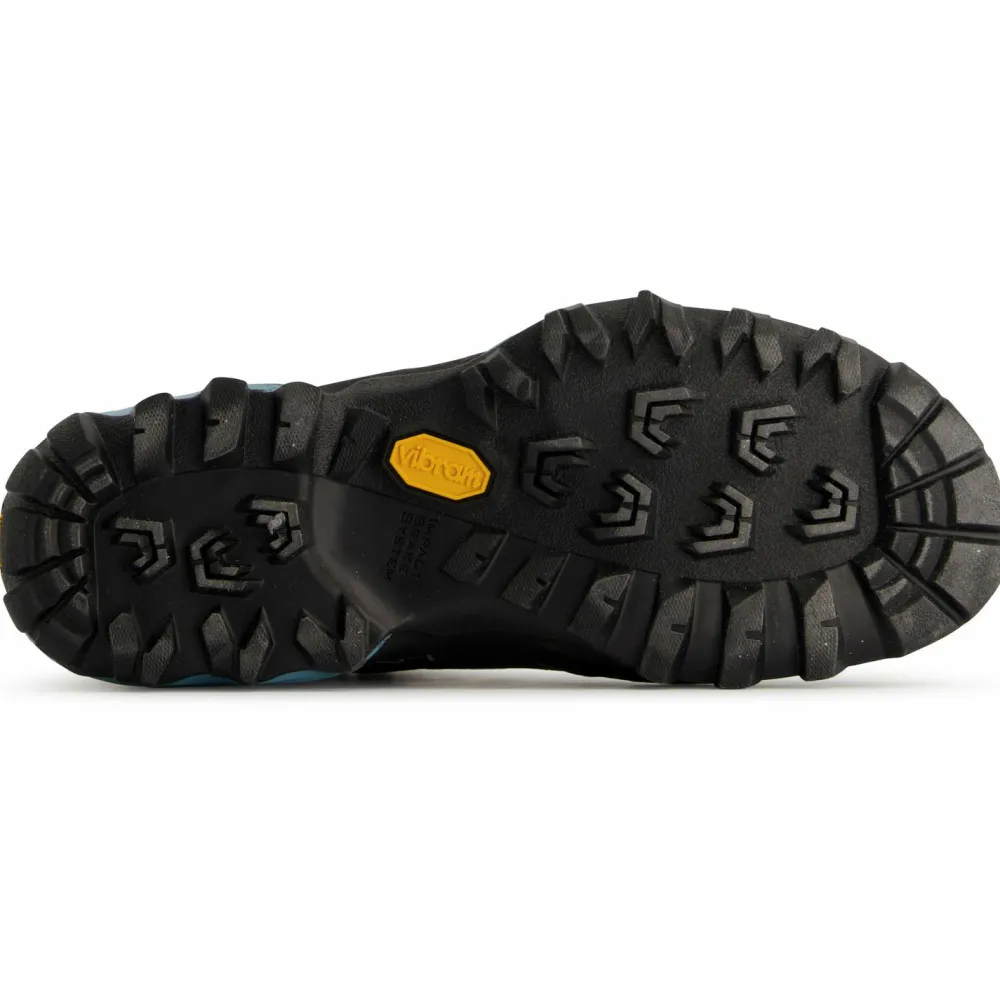 Im Gelände bieten die Women’s TXS GTX Wanderschuhe von La Sportiva auf dem unterschiedlichsten Untergrund zuverlässigen Grip. Dafür sorgt die rutschfeste Vibram MegaGrip Sohle mit ausgeprägtem Profil, breiter Ferse und Hiking-Stollen. Die Sohlenkonstruktion wird durch einen abriebfesten Geröllschutz mit stoßfester Gummikappe ergänzt und sorgt sowohl bergauf, als auch bergab, für sicheren Halt beim Wandern und Bergwandern. Der La Sportiva Wanderschuh ist aus leichtem und abriebfestem Mesh-Gewebe gefertigt und wird per Zwei-Zonen-Schnürung bequem verschlossen. Im Inneren garantiert die wasserdichte und atmungsaktive GORE-TEX Extended Comfort Membran, dass die Füße auch bei Regen und Nässe angenehm trocken bleiben. Mit ihrer funktionellen Mischung aus geringem Gewicht, Wetterschutz und sehr guter Strapazierfähigkeit sind die Women’s TXS GTX besonders vielseitig im Gelände einsetzbar.