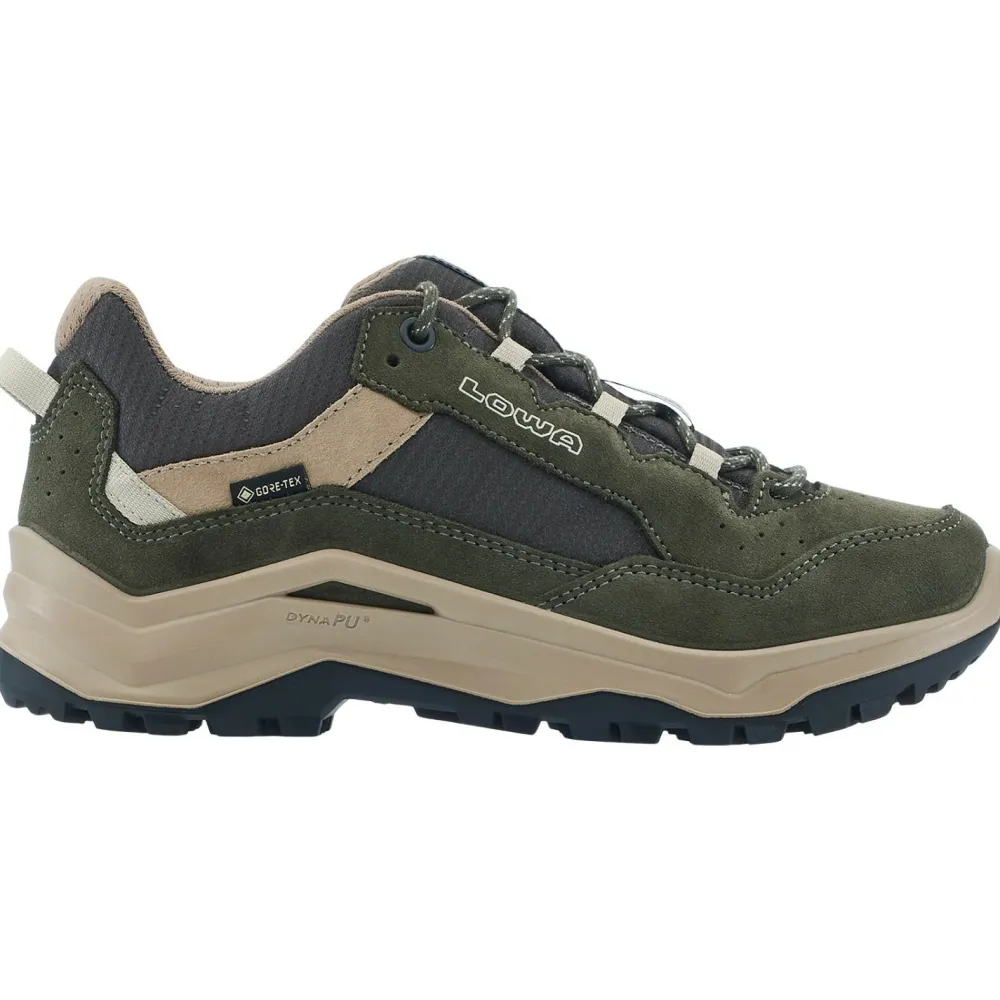 Mit dem Women`s Ventierra GTX Lo haben die Wander- und Alpinexperten von Lowa ein echt vielseitiges Eisen im Feuer. Der Multisport-Schuh ist durch den niedrigen Schaft vergleichsweise leicht, Du genießt aber dennoch -dank der Zwischensohle aus Dyna-PU- beste Wanderschuh-Dämpfung. Du kannst den Schuh außerdem sowohl auf dem Trail als auch im winterlichen Alltag tragen, und bist dabei stets schön komfortabel unterwegs. Und die leistungsfähige Gummilaufsohle mit multidirektional angeordneten Stollen bietet Dir auch im rauen Gelände guten Grip.