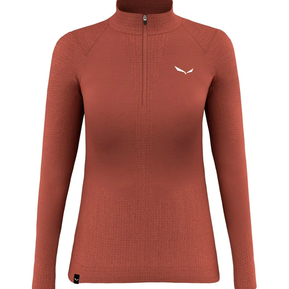 Für Speed Hiking und flotte Skitouren ist die Merinounterwäsche Women’s Zebru Medium Warm AMR Half Zip Tee von Salewa ideal! Die Merinowolle hält Dich warm, überhitzt Dich jedoch nicht. Feuchtigkeit wird flott abgeleitet und das Shirt trocknet schnell. Von Natur aus wirkt die Wolle zudem geruchshemmend. Der kleine Stehkragen schützt den Nacken gut vor Kälte. Über den Reißverschluss kannst Du bei Bedarf belüften. Zudem ist das Shirt dehnbar, damit Du Dich frei bewegen kannst. Ideal für geschwindigkeitsorientierte Touren am Berg!