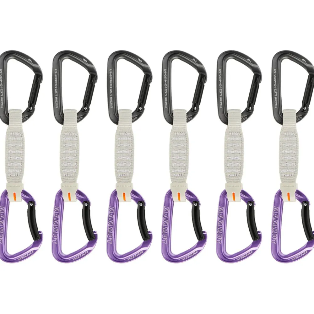 Das Workhorse Keylock Quickdraws Express-Set von Mammut setzt Maßstäbe in Handling und Leistung. Der ergonomisch geformte Karabiner liegt perfekt in der Hand. Seine großzügige Geometrie, die geriffelte Griffzone am geraden Schnapper und die verbesserte Keylock-Nase erleichtern das Clippen sowie Ein- und Aushängen. Die innovative Profil-Konstruktion macht ihn besonders robust und spart gleichzeitig Gewicht. Die Polyesterschlinge ist gut zu greifen, ein robuster Schlingenschutz fixiert den unteren Karabiner und verringert den Verschleiß. Ein Indikator in kräftigem Orange zeigt an, dass Schlinge und Fixierung korrekt am Karabiner hängen. Du kannst Dich ganz aufs Klettern konzentrieren.