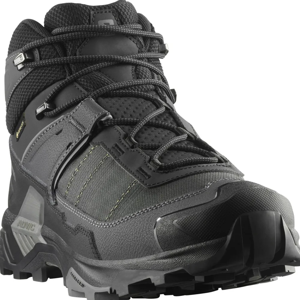 Die Salomon X Ultra 5 Mid Wide GORE-TEX Wanderschuhe bieten dank der SensiFit-Technologie und der OrthoLite-Einlegesohle eine präzise und bequeme Passform. Diese Kombination hält Deinen Fuß stabil, während sie gleichzeitig die nötige Flexibilität für lange Wanderungen bietet. Die Schnürung ermöglicht es Dir, die Passform individuell anzupassen, und die praktischen Anziehschlaufen machen das An- und Ausziehen zum Kinderspiel. So kannst Du Dich voll und ganz auf Dein Abenteuer konzentrieren, ohne Dir über unbequeme Schuhe Gedanken machen zu müssen.
