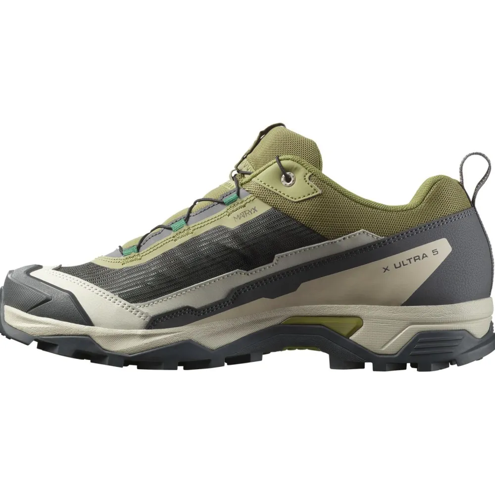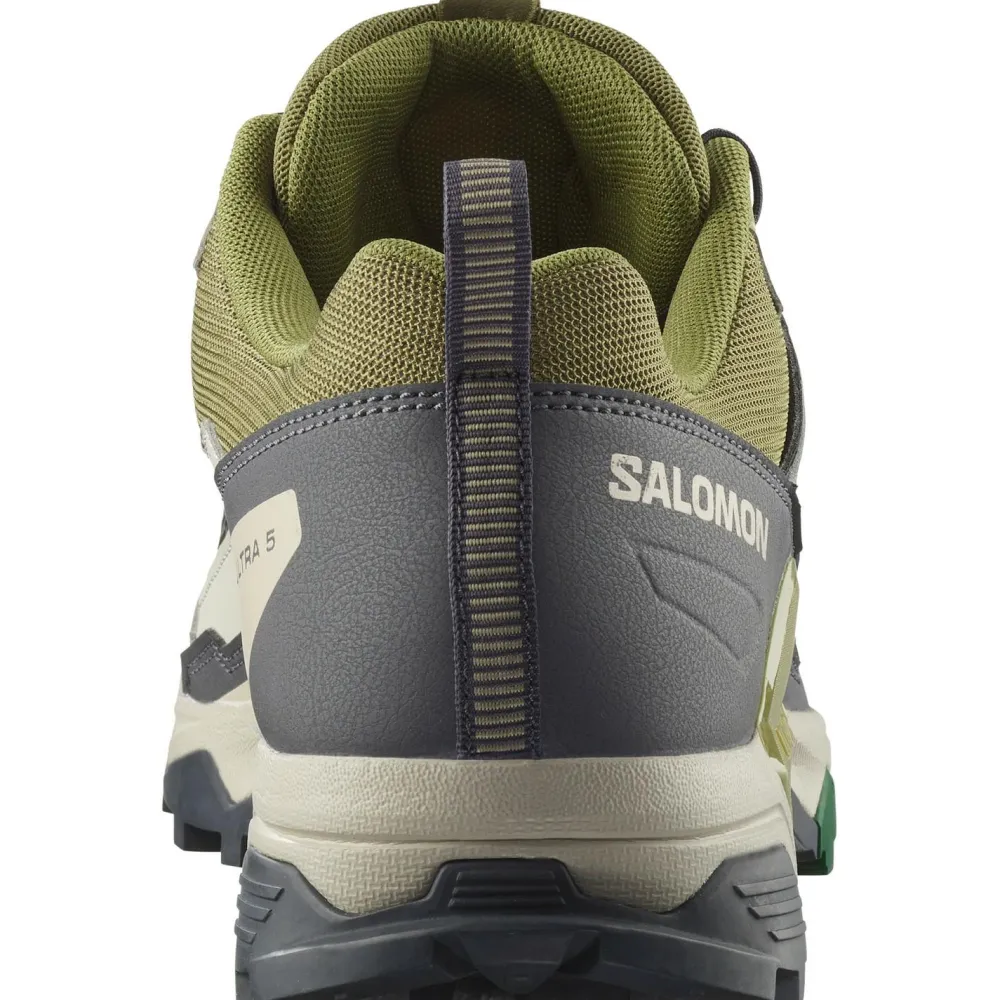 Mit einer verstärkten Ferse und Fußspitze bieten die Salomon X Ultra 5 Schuhe den nötigen Schutz vor Stößen und rauem Gelände. Die Contagrip-Sohle sorgt für hervorragende Traktion, sodass Du auch auf steinigen Wegen sicher unterwegs bist.