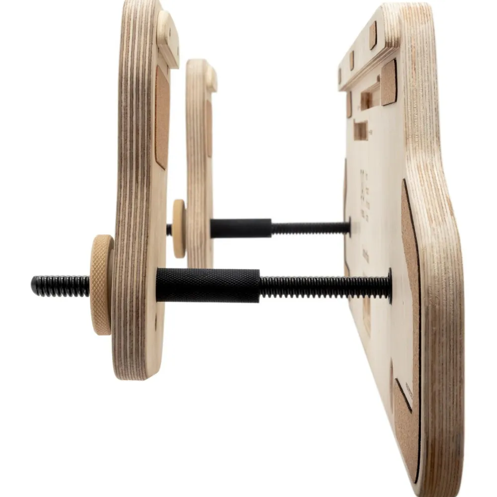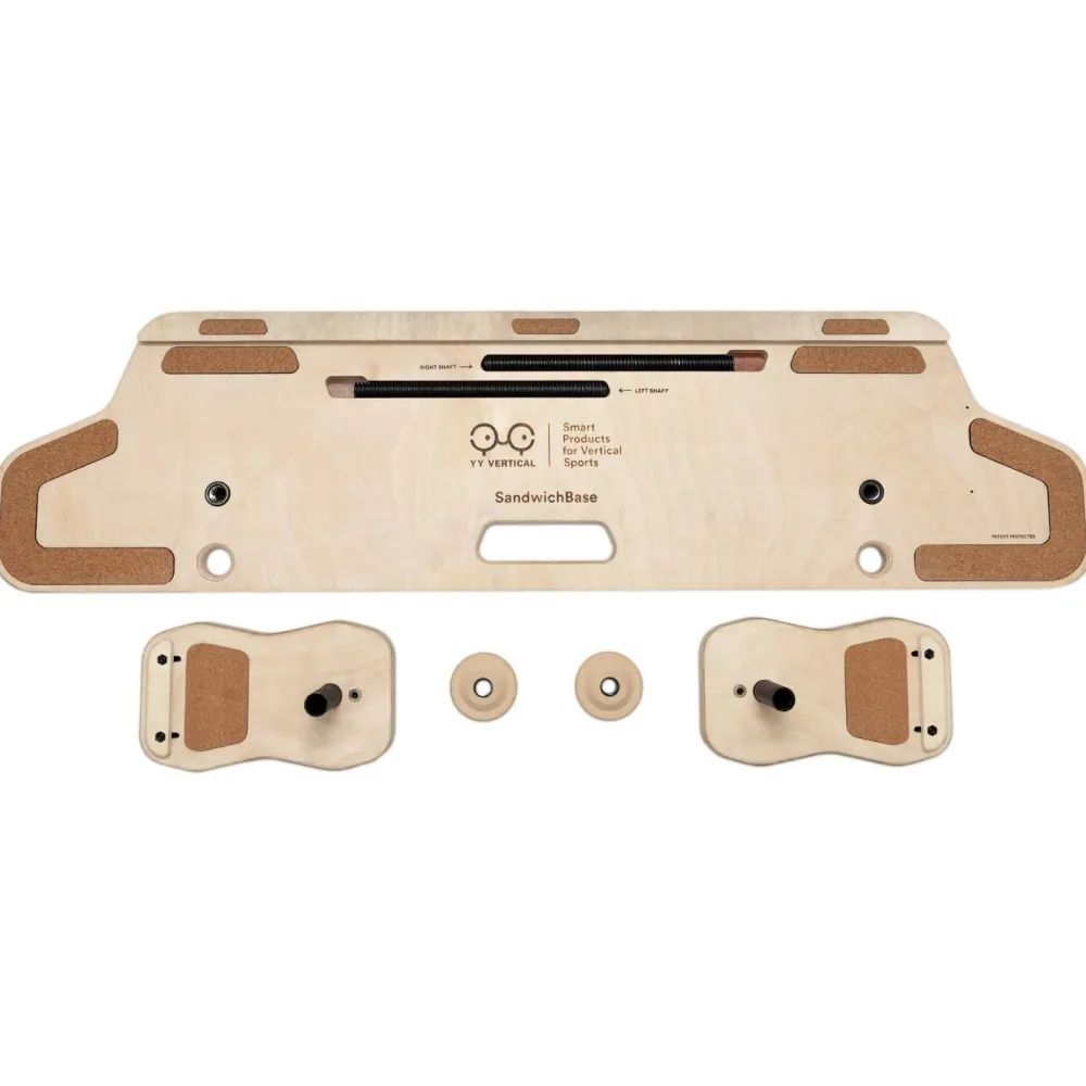 Die Sandwichbase von YY Vertical ist die clevere Halterung, um einen Trainingsbalken zu installieren, ohne die Wände zu durchbohren. Das Holz-Stahl-System nutzt den Bogen aus: Einmal in Deinen Türrahmen geklemmt, ist der Halt stabil und sicher, auch bei dynamischen Klimmzügen.