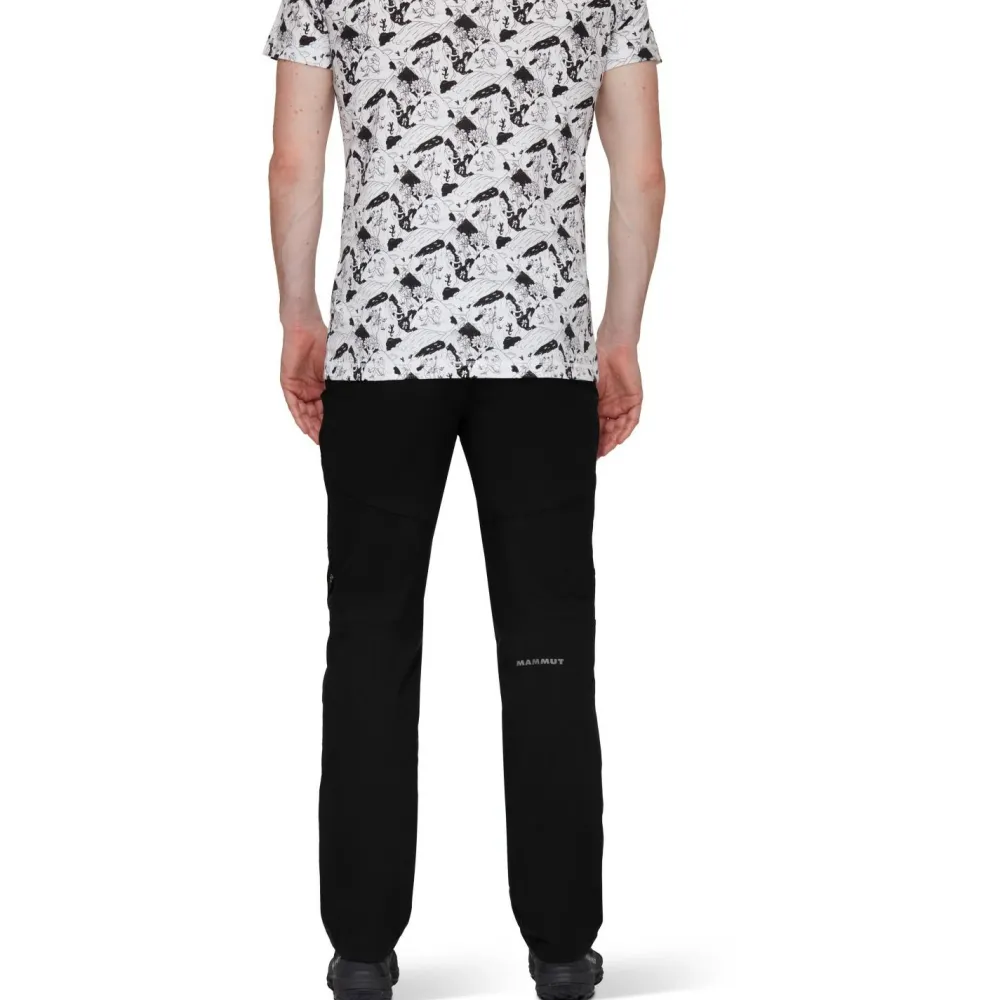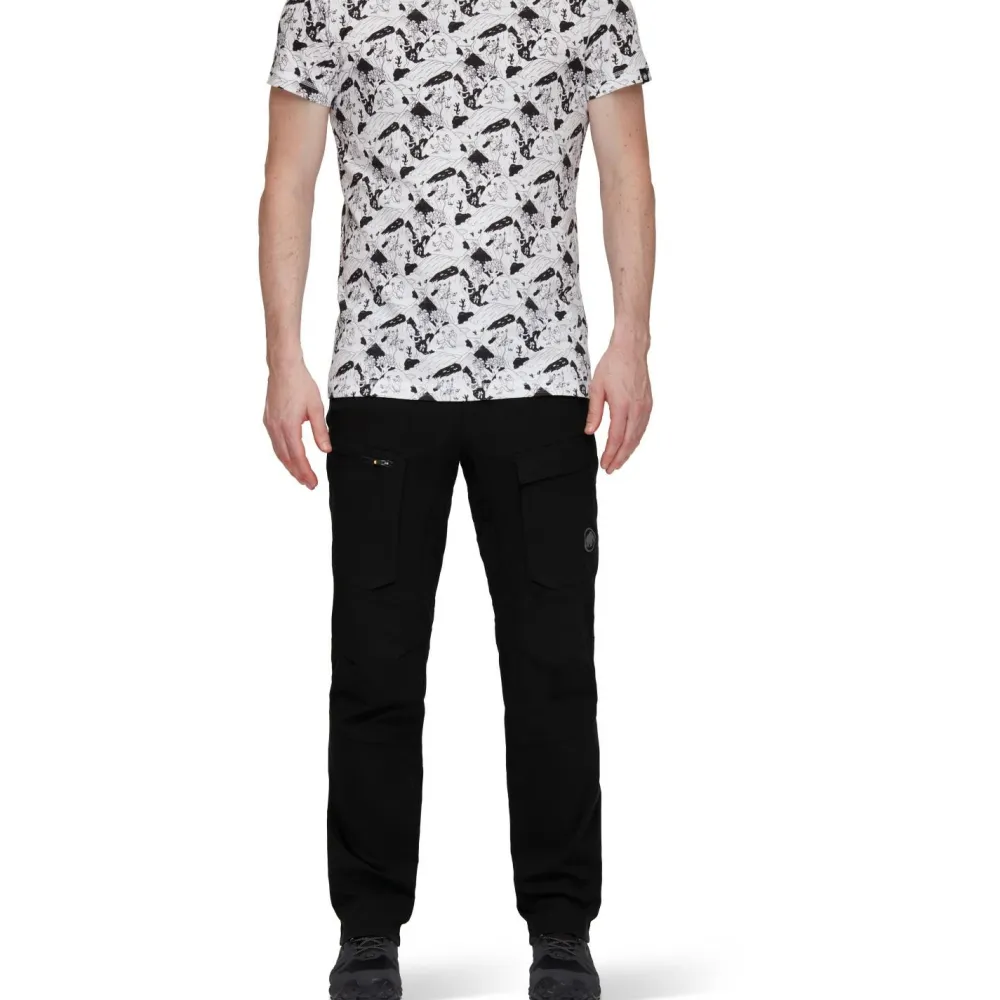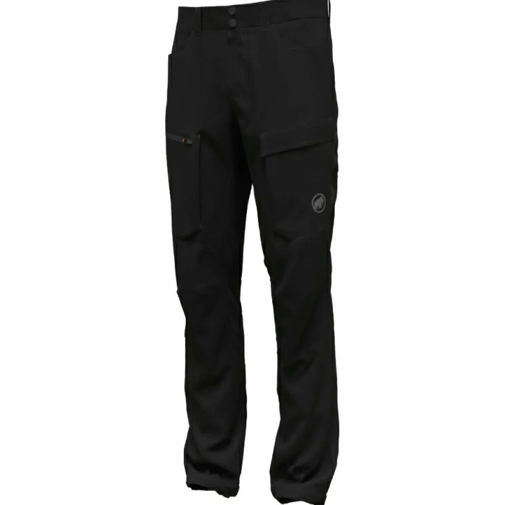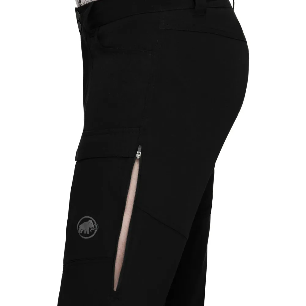 Mit Druckknöpfen wird die Mammut Hose sicher verschlossen. An den Beinen bieten zwei seitliche Reißverschlüsse zusätzlich Ventilation bei warmem Wetter. Neben zwei Fronttaschen und einer Gesäßtasche sorgen zwei Beintaschen für noch mehr Stauraum auf Tour.