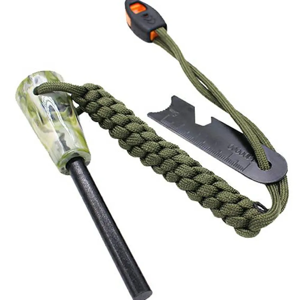 Der Zündstahl Stone von Origin Outdoors verfügt über einen angenehm in der Hand liegenden Griff in edler Steinoptik und bietet auch bei Nässe und mit Handschuhen sicheren Halt beim Feuermachen. Am Band ist eine Notfallpfeife angebracht. Zudem verfügt der Zündstahl über einen Flaschenöffner, ein Kartenmesser, ein Lineal und einen 8er Schlüssel. Ideal zum Campen!
