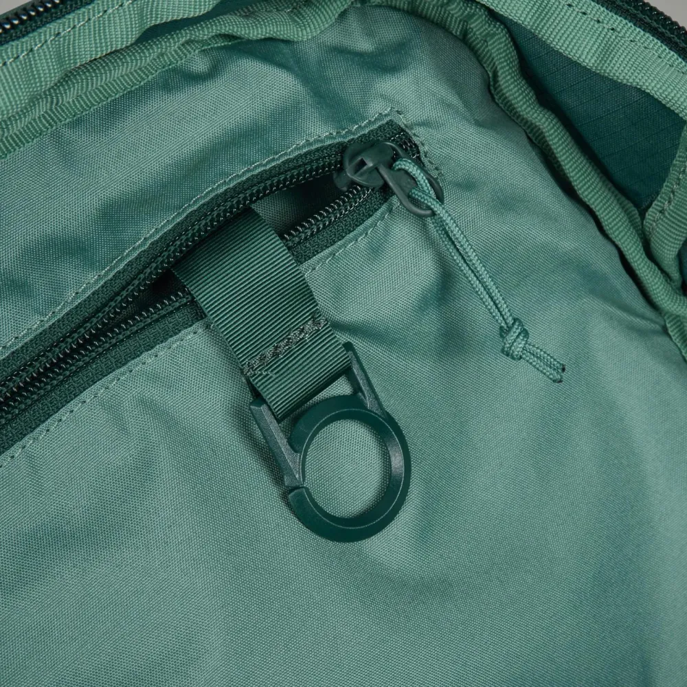 Das Gurtdesign mit Schulterträgern und Brustgurt sorgt für eine hervorragende Passform. Eine Innentasche mit Reißverschluss und Schlüsselclip ermöglicht die sichere Aufbewahrung wichtiger kleiner Gegenstände. Das externe Bungee-Kompressionssystem ermöglicht es Dir, Ausrüstung wie beispielsweise eine Regenjacke stets griffbereit zu haben. Zudem bietet die versteckte Reißverschlusstasche am Rücken sicheren Platz für Wertsachen oder Karten. Hergestellt aus 100 % recyceltem 210-Denier-Seawastex®-Material.