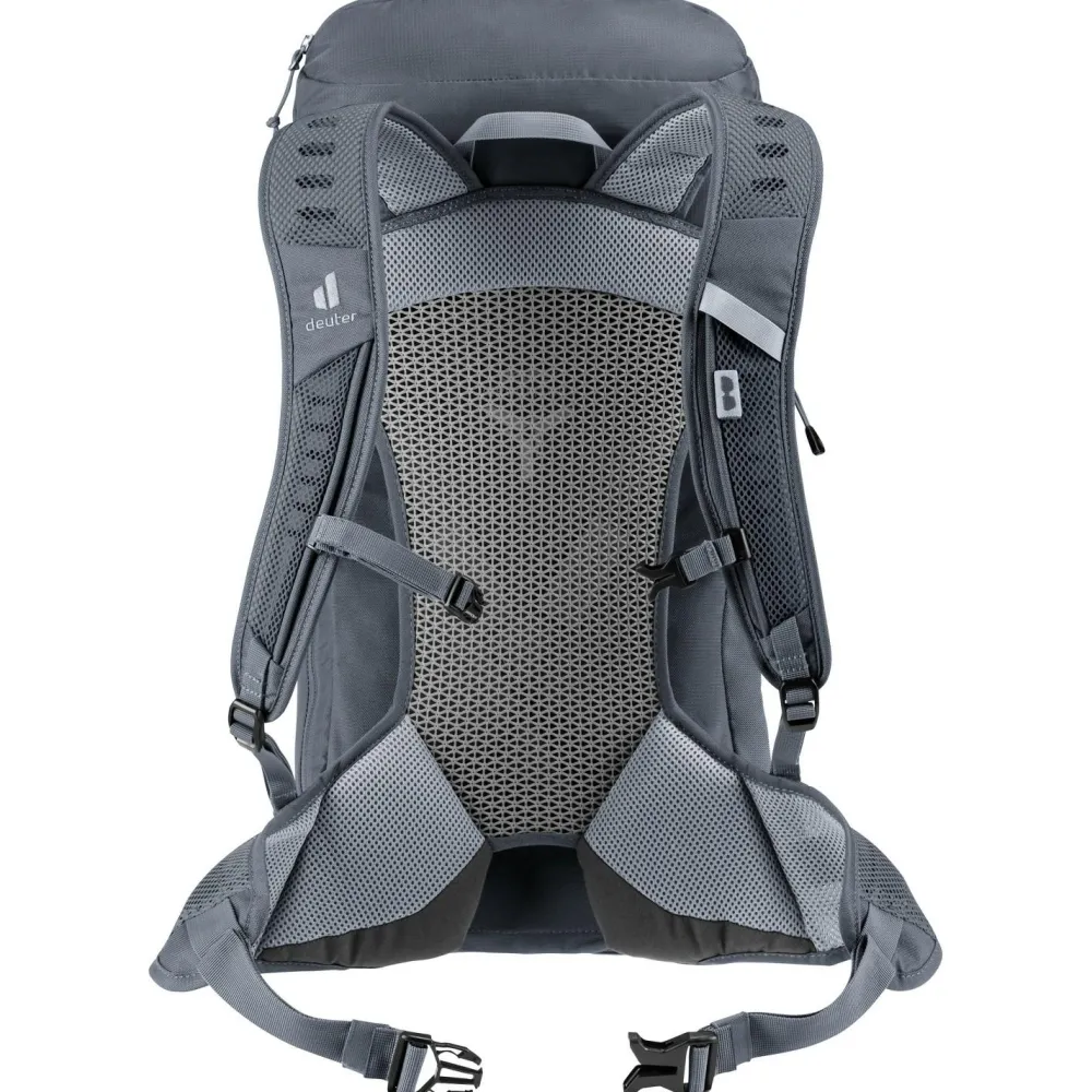 Du suchst einen leichten und bequemen Rucksack für Tagesausflüge? Der AC Lite 24 von deuter ist ein hervorragender Begleiter für Wanderungen oder Tagestrips in die Stadt.Das geringe Gewicht wird über einen ergonomisch gepolsterten Hüftgurt, den elastischen Federstahlrahmen und den höhenverstellbaren Brustgurt gut verteilt. Durch das deuter-Aircomfort Tragesystem mit dem Netzeinsatz am Rückenteil ist Dein Rücken gut belüftet und der Rucksack fühlt sich noch leichter an. Trotz seiner Leichtigkeit bietet der AC Lite 24 mit seinen vielfältigen Fächern und Halterungen Platz für die Dinge, die Du auf der Tagestour brauchen könntest.Auch für schlechtes Wetter ist der AC Lite 24 mit einer abnehmbaren Regenhülle gut ausgestattet. Der Umwelt zuliebe wurde bei dem Hauptmaterial auf recycelte Bestandteile geachtet.
