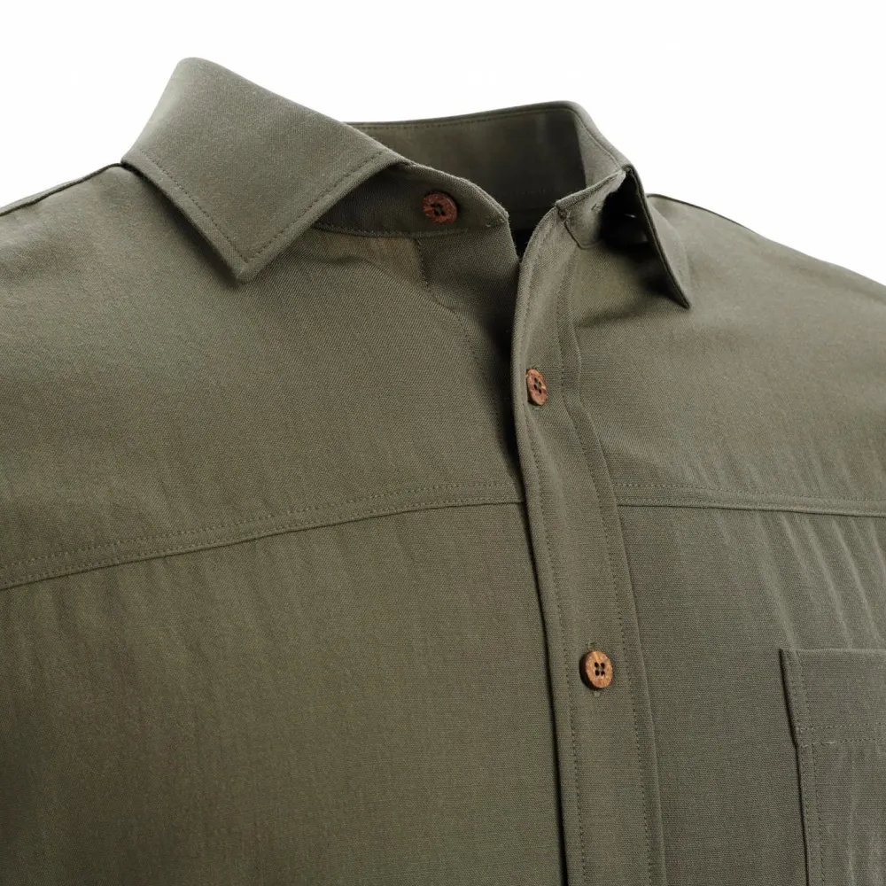 Das Woven Wool Shirt von Aclima ist ein Hemd, das sich nicht nur für die Freizeit empfiehlt, sondern auch zum Wandern, Trekking und Reisen. Es besteht zu einhundert Prozent aus Merinowolle und bringt dadurch praktische Eigenschaften mit sich. Merinowolle ist von Natur aus geruchshemmend, sodass man es ohne Probleme auch mehrere Tage hintereinander tragen kann, ohne dass es gleich unangenehm riecht. Zusätzlich ist die Naturfaser temperaturregulierend sowie atmungsaktiv ist, was perfekt ist, wenn es auch mal aktiver werden darf wie beim Wandern oder Trekking. Und dank der Verstärkungen im Schulterbereich kann man mit dem Hemd ohne Probleme auch schwere Rucksäcke tragen, ohne dass das Hemd nach ein paar Tagen darunter leidet. Was will man mehr?