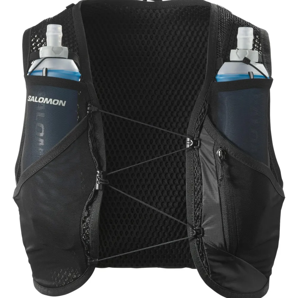 Bei der Active Skin 8 Set von Salomon handelt es sich um eine Laufweste, die sich auf das Wichtigste beim Running konzentriert. Sie ist leicht und kommt mit einem Volumen von 8 Litern, was ausreichend Platz für die nächste Laufeinheit ist. Sie bietet eine praktische Flüssigkeitsversorgung – dank der beiden Soft Flasks, die im Lieferumfang mit enthalten sind. Diese liegen einfach in der Hand, damit man mühelos trinken kann, wenn das Durstgefühl aufkommt. Die Tasche bietet schnellen Zugriff auf Energy-Gels und andere Kleinigkeiten, während die Laufweste zahlreiche Stockhalterungslösungen bietet und einen Schlüssel-Clip. Mit dem Active Skin 8 Set sind Trailrunner bestens ausgestattet fürs nächste Abenteuer!