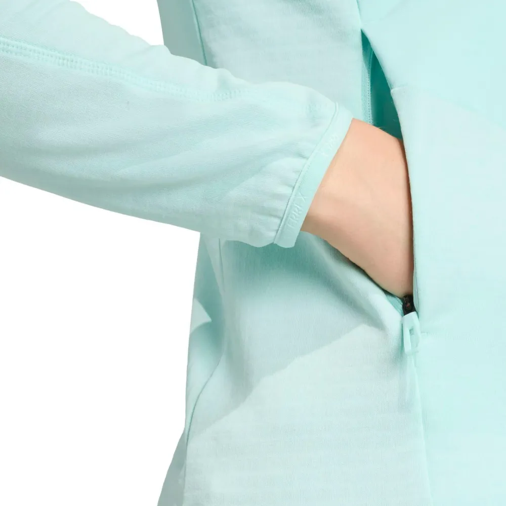 Die Women’s Terrex Techrock CW+ Wind Hooded Fleecejacke von adidas Terrex ist Dein verlässlicher Begleiter für jede Wanderung. Mit einem durchgehenden Front-Reißverschluss kannst Du die Belüftung ganz einfach anpassen, während die elastische Kapuze Dich vor Wind und Wetter schützt. Diese funktionalen Eigenschaften sind besonders wichtig, wenn das Wetter in den Bergen mal wieder Kapriolen schlägt.