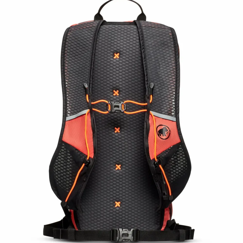 Der leichte Wanderrucksack besteht größtenteils aus recyceltem Polyamid und ist Fair Wear zertifiziert. Ein wasser- und schmutzabweisende DWR-Behandlung schützt seine Oberfläche und macht den Rucksack wetterfest. Mit reflektierenden Details, zwei praktischen Soft-Flask Halterungen und einer Mesh-Außentasche ergänzt Mammut den sportlichen Rucksack.