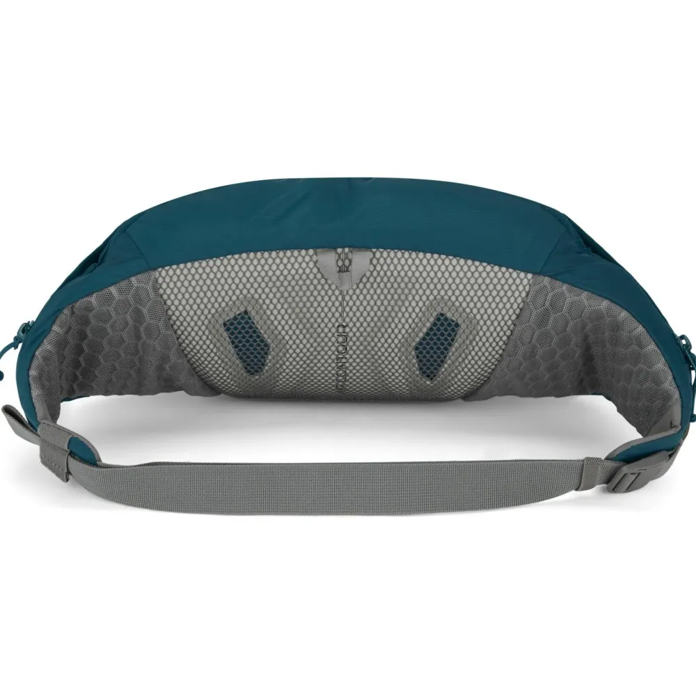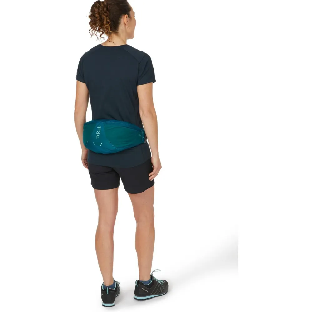 Die Aeon LT 5 von Rab ist eine ultraleichte Hüfttasche, die sich ideal zum Wandern oder für Tagesausflüge eignet. Sie ist so konstruiert, dass Du ohne Probleme auch etwas schneller unterwegs sein kannst. Dank der gewölbten Form sitzt die Tasche bequem und rutschfest auf der Hüfte. Die atmungsaktive Polsterung sorgt zudem für Belüftung und Schweißableitung, wenn es mal anstrengender wird.