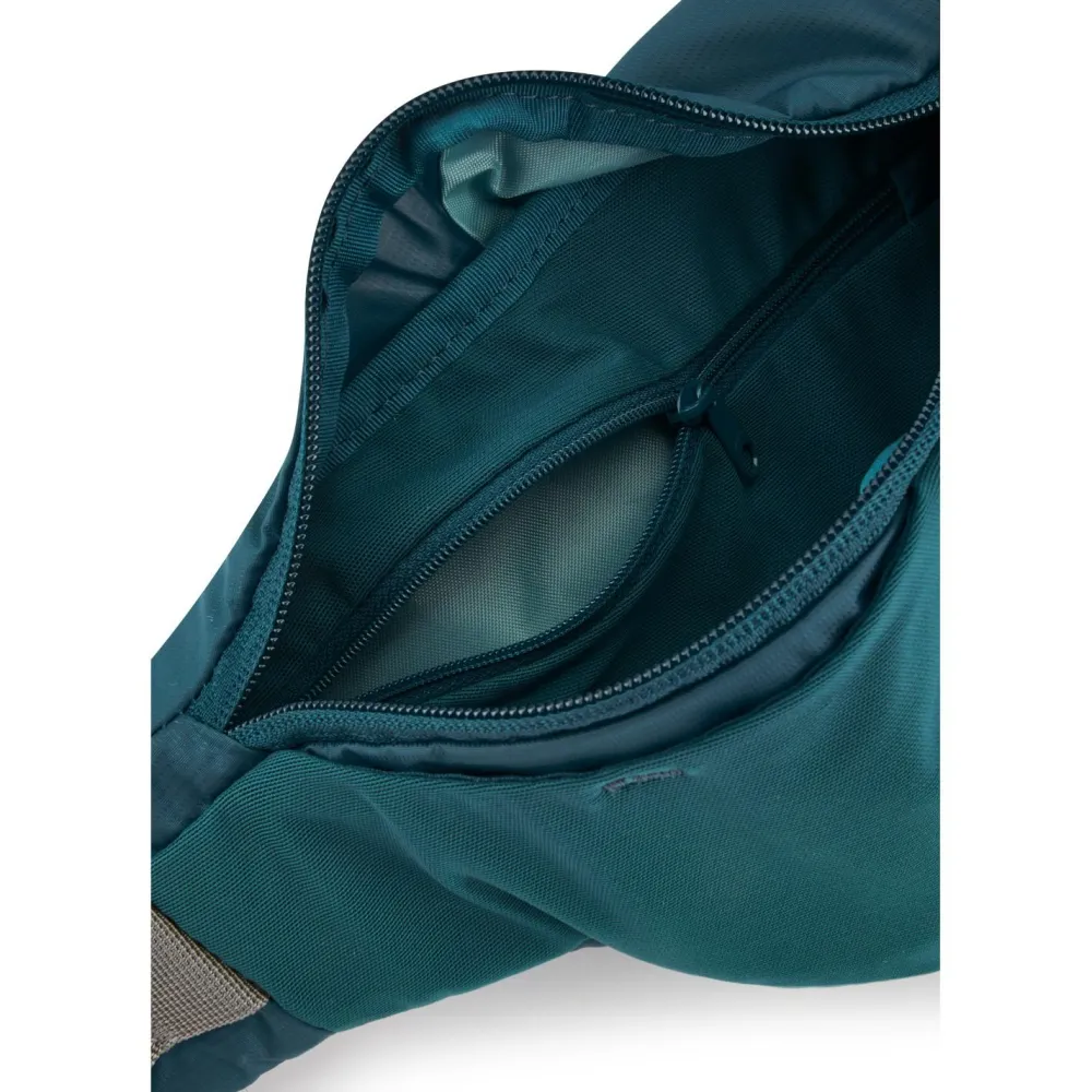 Das Material ist äußerst strapazierfähig und besteht zu einem großen Teil aus recycelten Fasern. Neben praktischen Innen- und Außentaschen verfügt die Hüfttasche über eine Befestigungsschlaufe für eine kleine Lampe. Ein praktischer und vielseitiger Begleiter auf Wanderungen und Reisen!