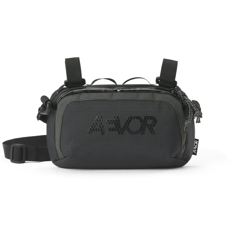 Die Bar Bag Mini von AEVOR ist eine kleine und stylische Lenkertasche. Mit ihrem abnehmbaren Hüftgurt lässt sie sich auch abseits des Bikes nutzen – ideal für Rastpausen oder Touren durch die City. Am Lenker wird sie mit zwei Klettverschlussbändern befestigt.