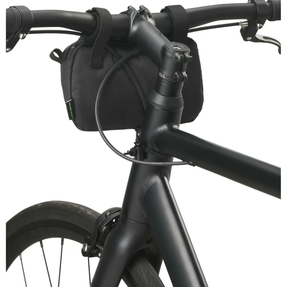 Die Tasche ist wasserdicht, besitzt zwei separate Fächer und zusätzliche Materialschlaufen. Sie wird aus recyceltem PET produziert und ist vegan. Mit ihr hast du an deinem Rennrad, Gravelbike oder Mountainbike eine praktische Verstaumöglichkeit für deine Wertsachen am Lenker!