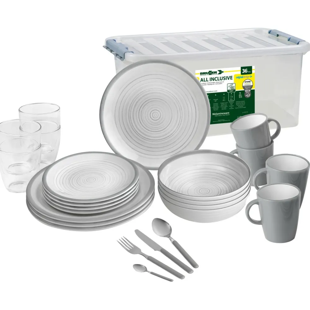 Das All Inclusive Trilogy Grey von Brunner ist ein elegantes Camping-Geschirrset für vier Personen, das Stil und Funktion perfekt verbindet. Die raffinierte Farbkombination aus drei Grautönen sorgt für ein harmonisches Gesamtbild – von Tellern über Becher bis hin zu Besteck und Gläsern.