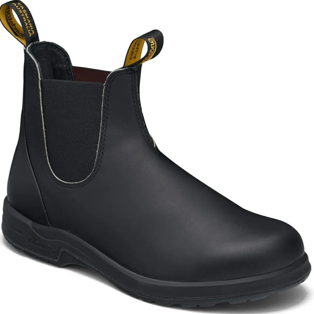 Mit Robustheit und Widerstandsfähigkeit punkten die Freizeitstiefel All-Terrain #2058 von Blundstone! Das wasserabweisende Leder bietet einen soliden Wetterschutz. Dank spezieller Behandlung reinigt sich das Außenmaterial von selbst. Die seitlichen elastischen Einsätze erleichtern das Hineinschlüpfen. Die flexible Zone im Sohlenbereich sorgt für einen weichen Gehkomfort. Die Vibram Laufsohle ist besonders langlebig, strapazierfähig und griffig. Ideal für einen vielseitigen Einsatz!