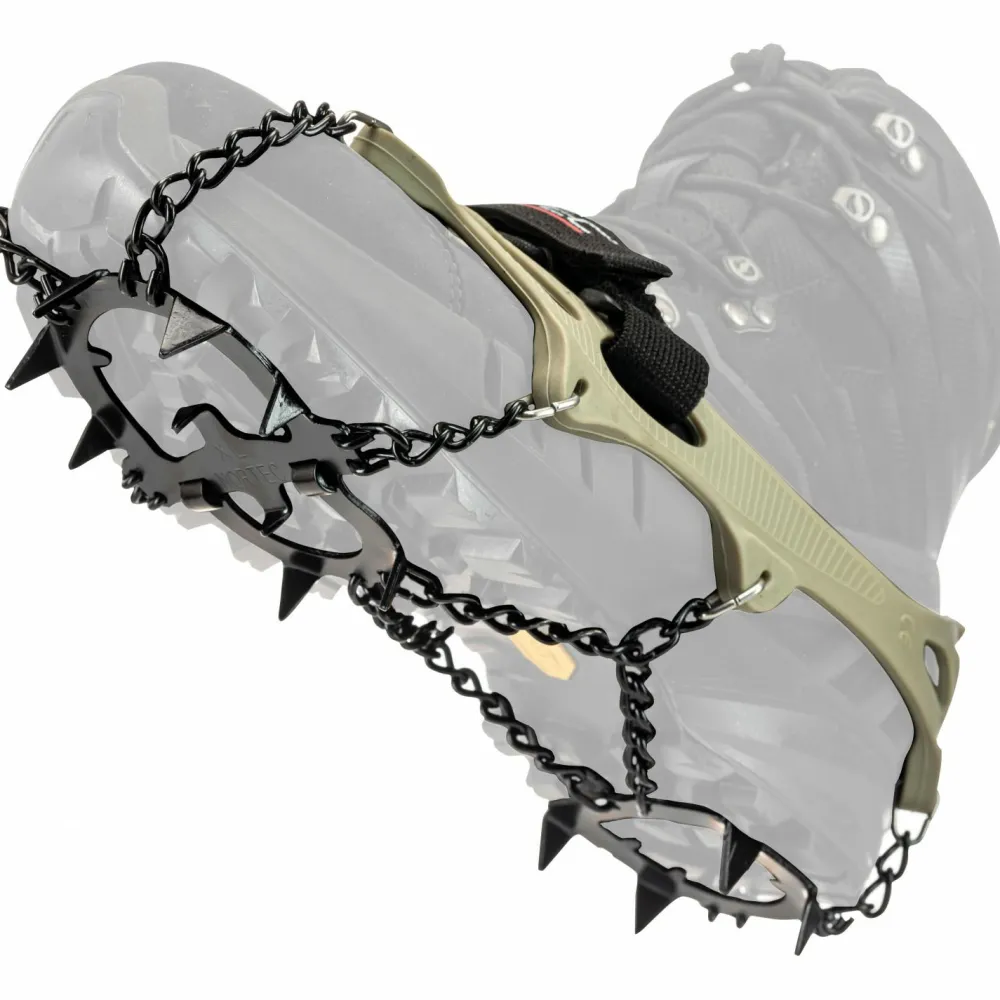 Die NORTEC Alp Forest Grödel sind für alle, die im Winter oft im Wald unterwegs sind. Für Forstarbeiten, Jagdausflüge und Streifzüge durch die Natur sind die Grödel die richtige Begleitung, um rutschsicher auf hartem Schnee, gefrorenem Unterholz und Eis vorwärts zu kommen. Sie können aber auch für andere Outdoor- und Freizeitaktivitäten im Winter eingesetzt werden. Aus widerstandsfähigen und kälteresistenten Materialien gefertigt, machen sie jedes Abenteuer mit.