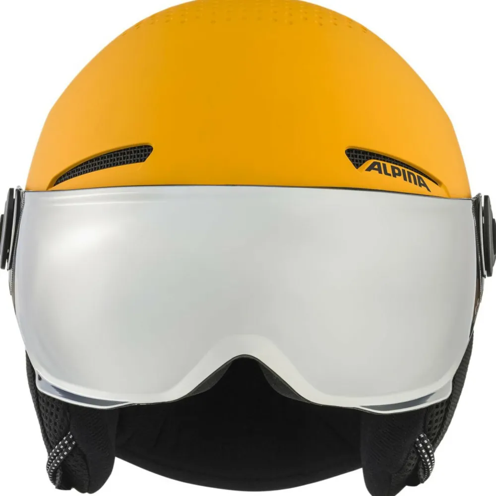 Der Kid’s Zupo Visor Q-Lite Mirror S3 von Alpina ist der richtige Skihelm für begeisterte Nachwuchs-Skifahrer/innen! Der Hardshellhelm besteht aus einem HI-EPS-Kern und einer schlagfesten Außenschale aus Polycarbonat. Diese Kombination sorgt für ein Maximum an Komfort und vor allem an Sicherheit. Der Helm ist mit zahlreichen Belüftungslöchern ausgestattet, sodass die Kleinen unter dem Helm ein tolles Klimamanagement genießen können. Zudem gibt es eine warme, atmungsaktive Polsterung, die je nach Bedarf auch herausnehmbar und waschbar ist. Und damit der Skihelm optimal auf dem Kopf sitzt, sorgt das sogenannte Run System, ein leicht zu bedienbares Drehrad, für eine optimale Passform.