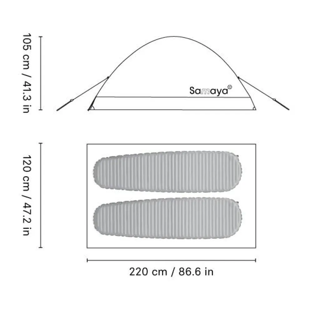 Wenn Du auf der Suche nach einem sehr leichten und minimalistischen Zelt für Deine kommenden alpinen Abenteuer bist, dann ist das Alpinist 2 2-Personen Zelt von Samaya die richtige Wahl. Es bietet ausreichend Platz für 2 Isomatten und damit zwei müde Outdoorfans, die sich nach einem anstrengenden Tag an der frischen Luft entspannt erholen wollen. Das Zelt überzeugt mit einem extrem geringen Gewicht und kann so auch auf anspruchsvolle Touren mitgenommen werden. Damit Du und Deine Ausrüstung im Inneren des Zelts geschützt seid, sind wasserdichte Materialien sowohl an den Seitenwänden, als auch im Bereich des Bodens integriert.