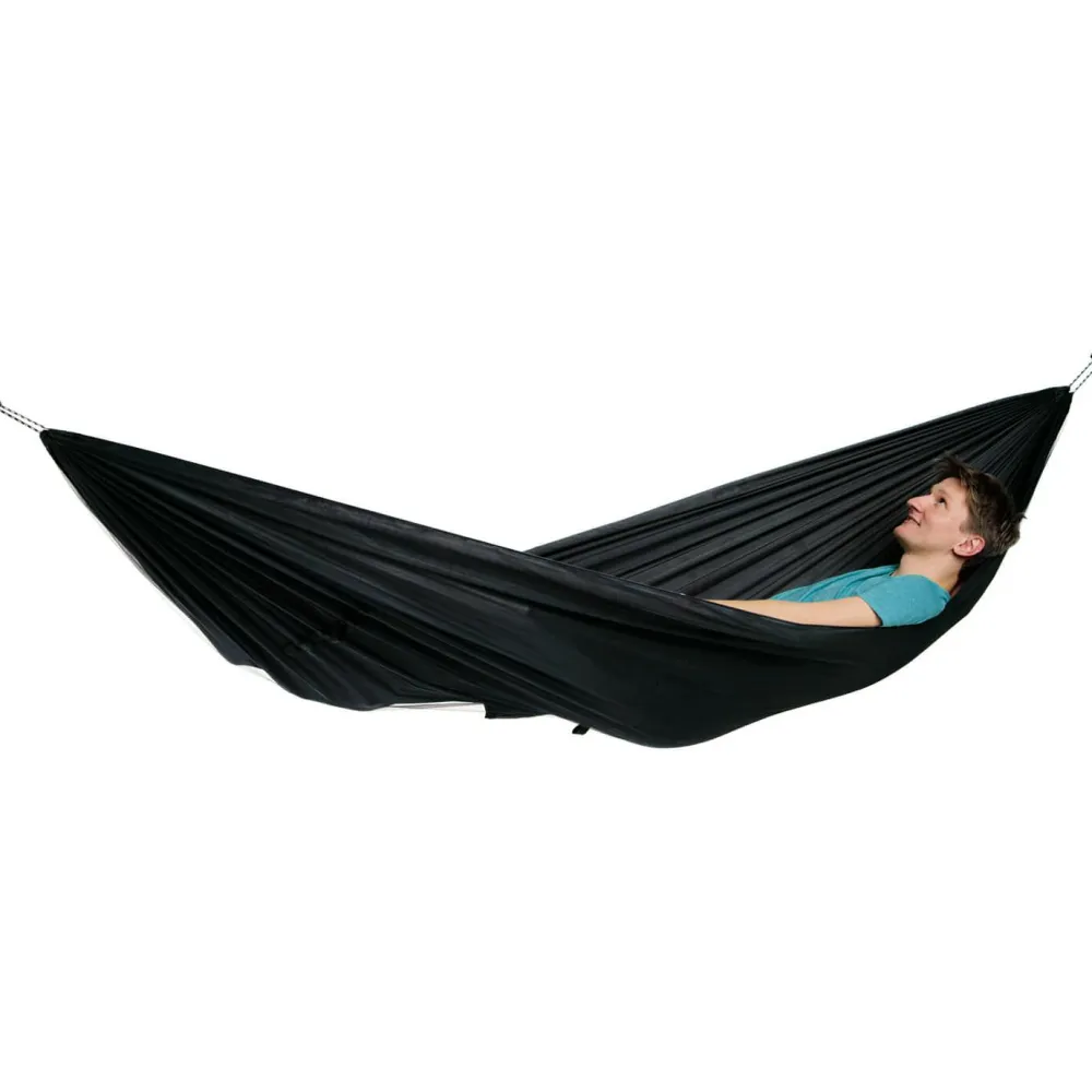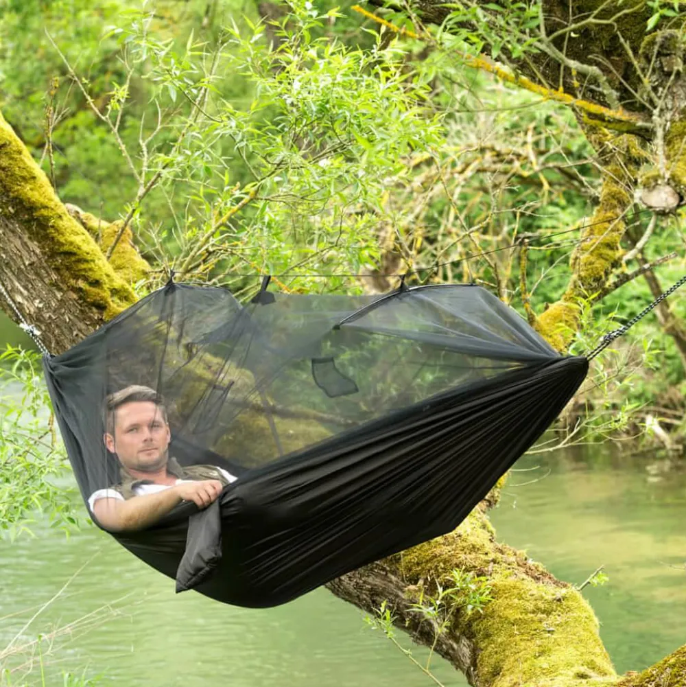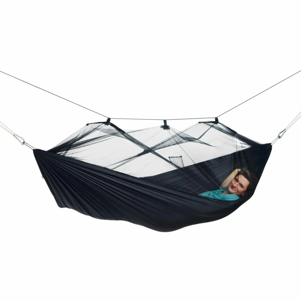 Gerade für Ausflüge in tropische Regionen ist die Moskito-Traveller Extreme Hängematte von Amazonas ideal. Denn sie hat ein Moskito-Netz, das über eine Schnur abgespannt werden kann, wodruch der Einstieg erleichtert wird. Spezielles Spreizstäbe vergrößern zudem den Innenraum. Das Netz ist mit einer speziellen Imprägnierung versehen, die Insekten abhält und gesundheitlich absolut unbedenklich ist. Außerdem hält sie bis zu 50 Wäschen lang. Die Matte kann von beiden Seiten und mit oder ohne Netz genutzt werden. Sie ist schön leicht und gut zu transportieren. Ebenso schnell ist sie im Camp aufgebaut und einsatzbereit. In der Moskito-Traveller Extreme Hängematte macht man es sich gerne gemütlich und kann die Nacht ganz ohne lästige Störenfriede genießen.