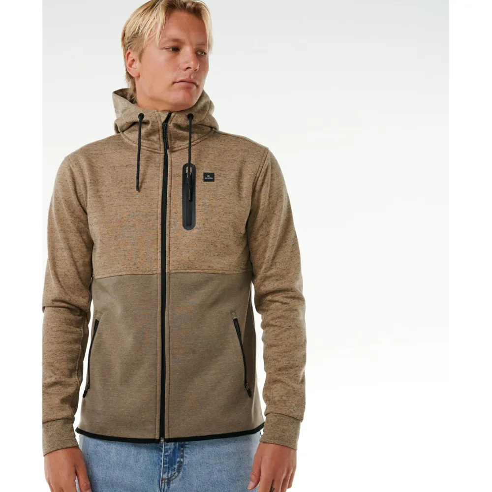 Der Anti Series Departed Zip Through von Rip Curl sieht sportlich aus und überzeugt mit seinem funktionalen Gewebe. Denn das Microfleece ist besonders atmungsaktiv und leitet Hitze sowie Feuchtigkeit schnell nach außen. Hierdurch ist es nach bei intensiven Aktivitäten schnell wie wieder trocken. Zudem ist es mit einer wasserabweisenden Imprägnierung behandelt, welche den Wetterschutz zusätzlich erhöht.