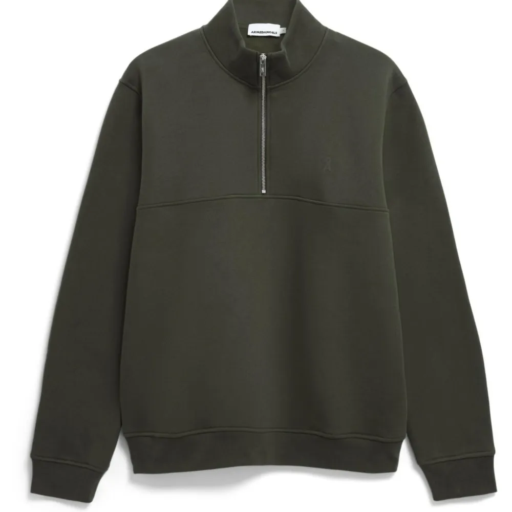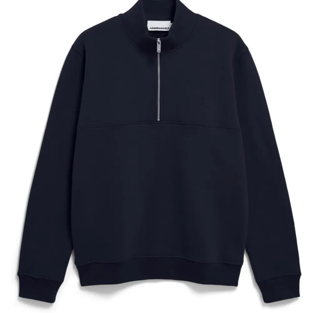 Bequemer Pullover mit halblangem Reißverschluss gefällig? Easy, schau Dir einfach mal den Waarlo Fleece von ARMEDANGELS an. Durch den bequemen Schnitt ist der Pullover sehr angenehm zu tragen und wirkt keineswegs einengend. Auch das Material ist sehr angenehm und kratzt auch direkt auf der Haut nicht. Durch den halblangen Reißverschluss kannst Du den Pullover bei Bedarf ein Stück weit öffnen und für einen schnellen Temperaturausgleich sorgen.