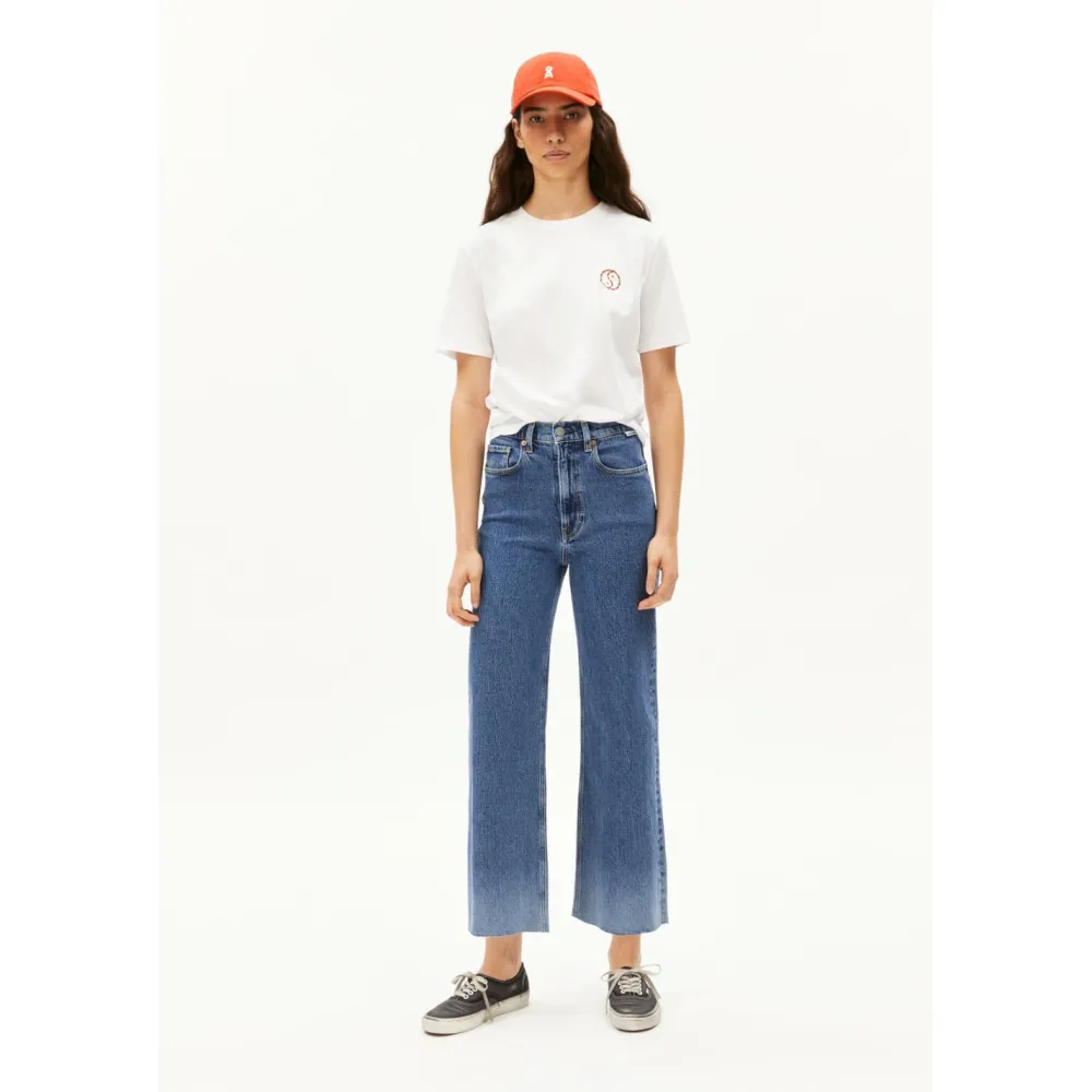 Die Women’s Murliaa Cropped von ARMEDANGELS kannst Du vielseitig kombinieren. Sie ist atmungsaktiv und schmiegt sich angenehm an Deine Haut an. Dank der Verarbeitung von recycelter Bio-Baumwolle überzeugt die Jeans besonders im Bereich Nachhaltigkeit.