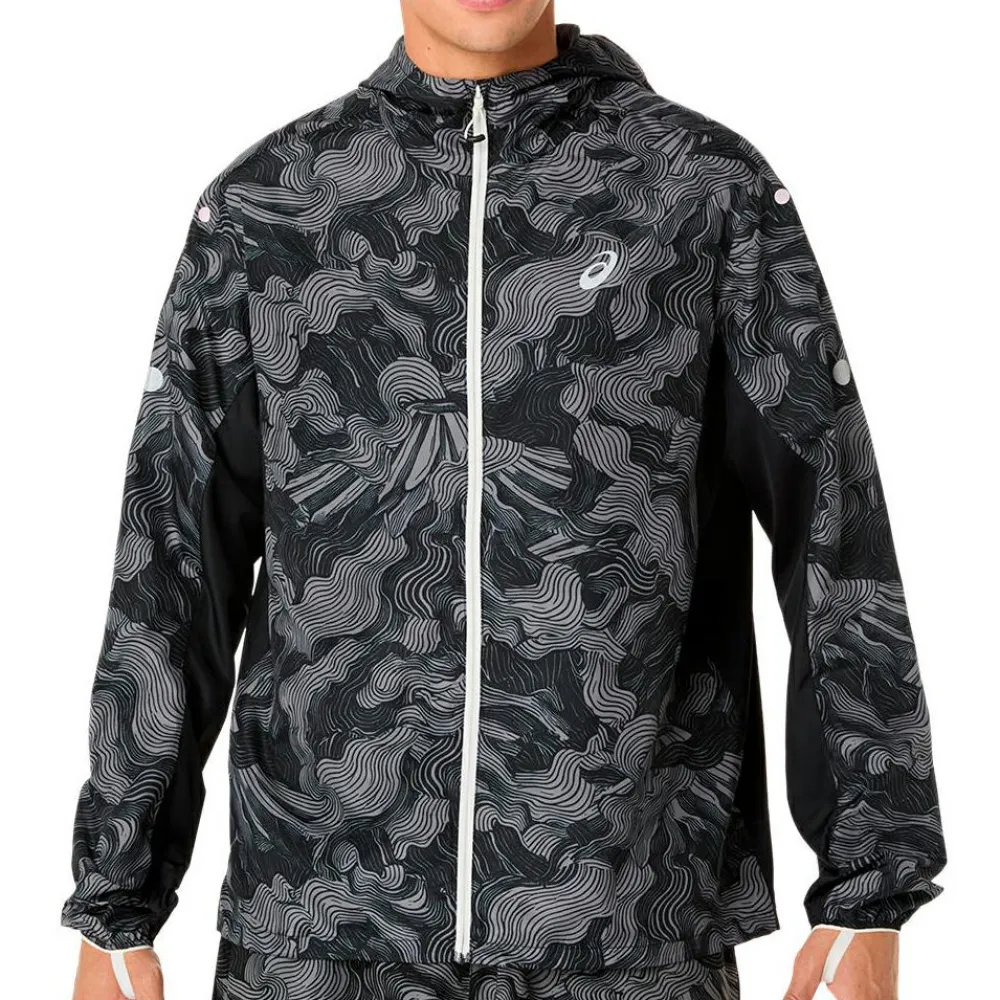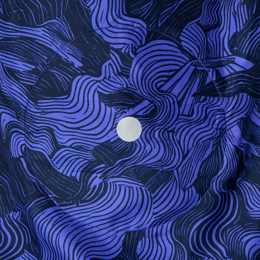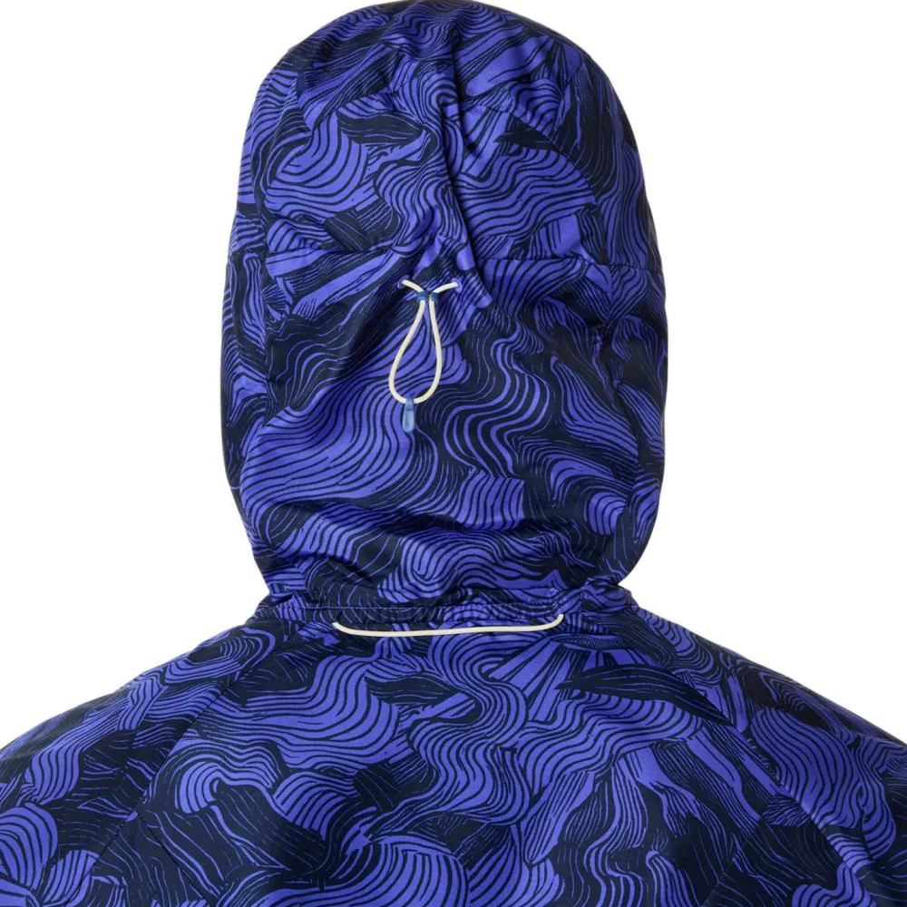 Praktisch für längere Touren: Das erweiterbare Rückenpanel schafft Platz, wenn Du die Jacke über einer Lauf- oder Trailweste trägst. Eine elastische Kapuze und die justierbare Kordel sorgen für einen zuverlässigen Sitz im Gelände. Abgerundet wird die Jacke durch einen Print, der vom Fuji inspiriert ist – perfekt für spontane Offroad-Runden.