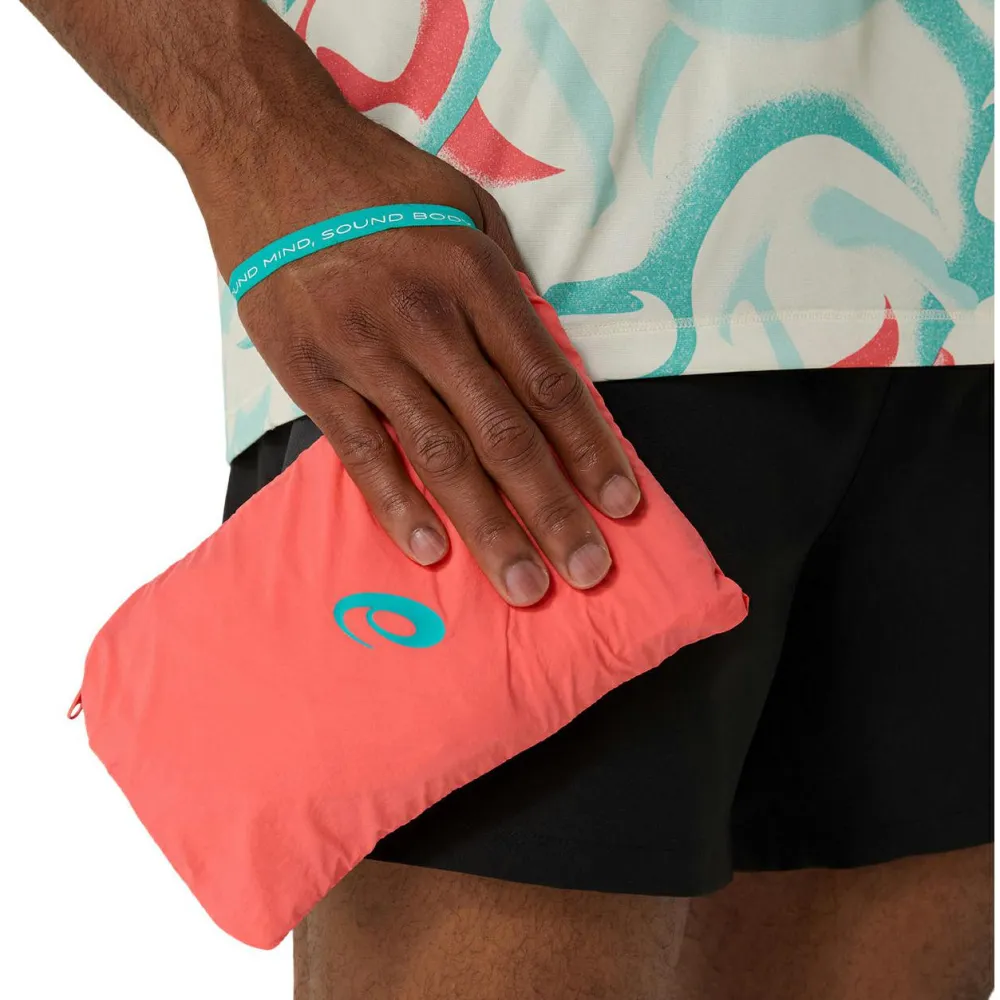 Praktikabilität wird bei der Asics Road Packable Jacket großgeschrieben. Zwei Reißverschluss-Fronttaschen bieten sicheren Platz für kleine Gegenstände wie Schlüssel oder Energieriegel. Der Kordelzug im Saum ermöglicht eine individuelle Anpassung der Passform, während die Möglichkeit, die Jacke in ihrer eigenen Tasche zu verstauen, eine einfache und platzsparende Aufbewahrung bietet. Diese Merkmale sind besonders nützlich für Läufer, die unterwegs organisiert bleiben möchten.