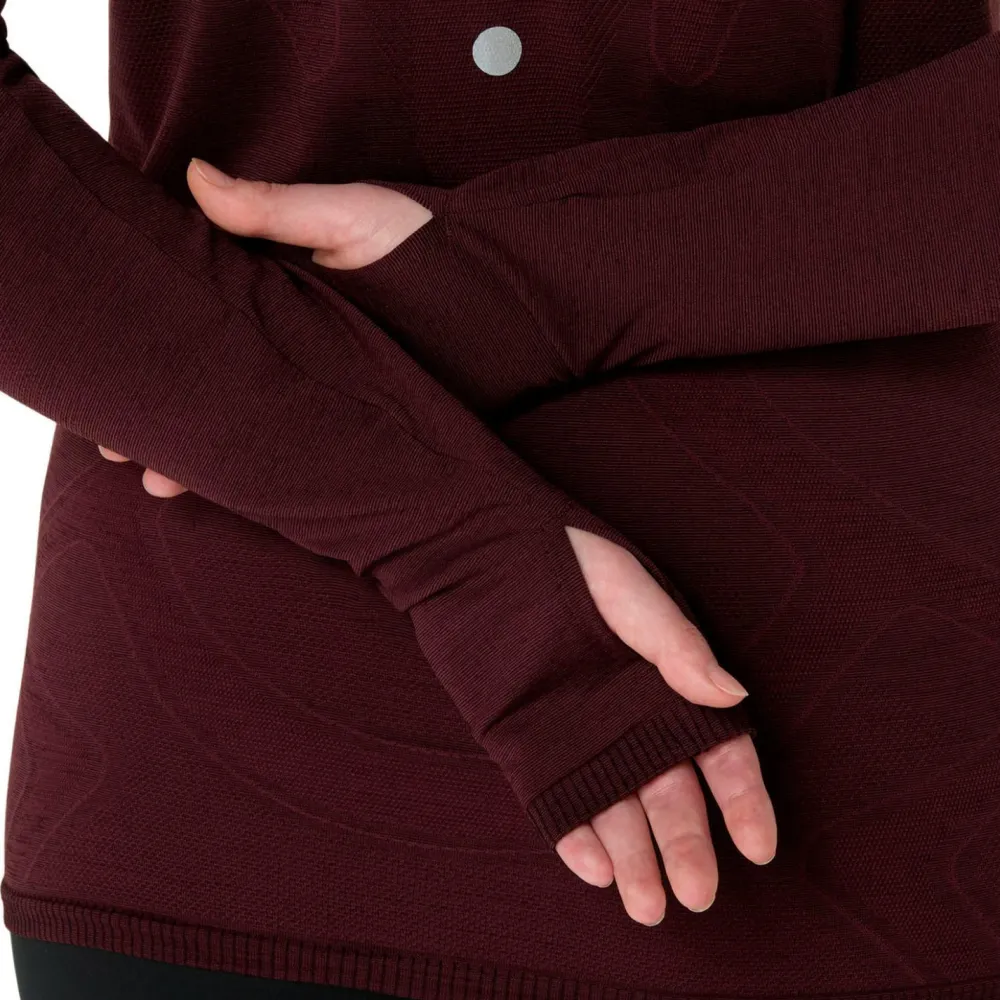 Lasse Dich vom Winterwetter nicht vom Laufen abhalten! Das Women’s Road Winter Seamless L/S Top von Asics wurde entwickelt, um Dich warm zu halten. Es besteht aus einem weichen Thermomaterial, das nicht nur warm, sondern auch äußerst bequem ist. Nach dem Body-Mapping-Prinzip strategisch angeordnete Belüftungszonen sorgen für gezielte Belüftung und Atmungsaktivität. Zusätzlich schützt der Stehkragen vor Wind und die Daumenlöcher an den Ärmeln sorgen für Komfort.