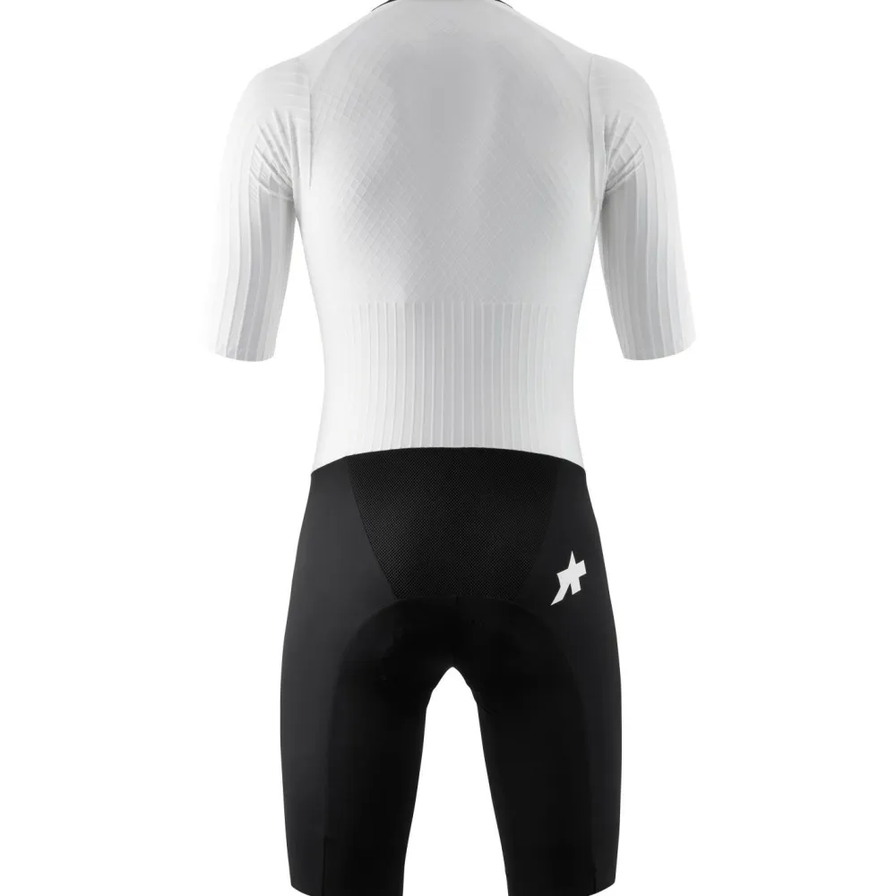 Der Rapidfire Chronosuit S11 von ASSOS ist auf kompromisslose Geschwindigkeit ausgelegt. Die Kombination aus Hawk-01 für das Oberteil und Eagle-01 für Ärmel und unteren Rücken sorgt für eine optimierte Luftströmung, die im Windkanal getestet wurde. Diese Materialien sind nicht nur extrem glatt, sondern auch so positioniert, dass sie den Luftwiderstand in typischen Zeitfahrpositionen minimieren. Das Ergebnis: messbare Vorteile bei hohen Geschwindigkeiten, die sich vor allem in Wettkampfsituationen auszahlen.