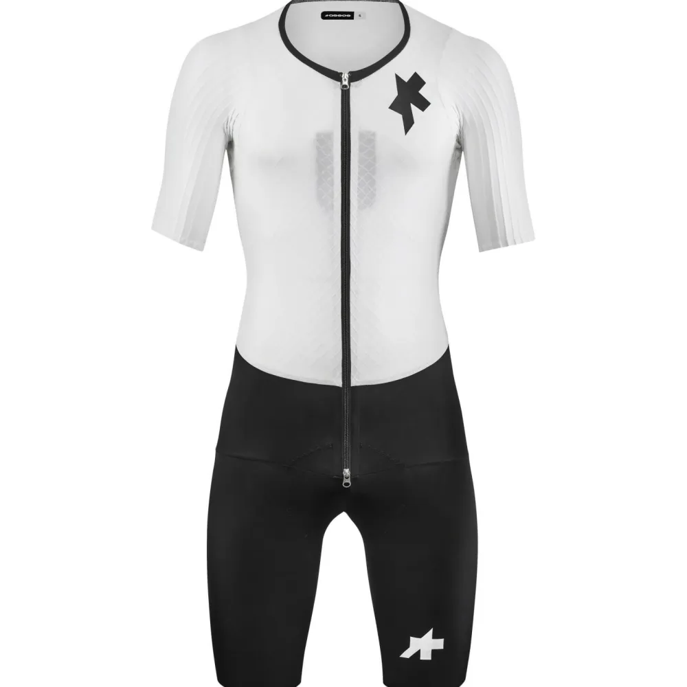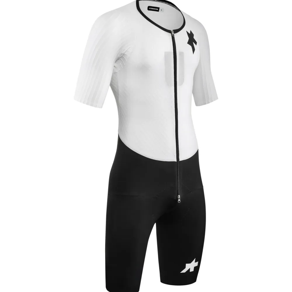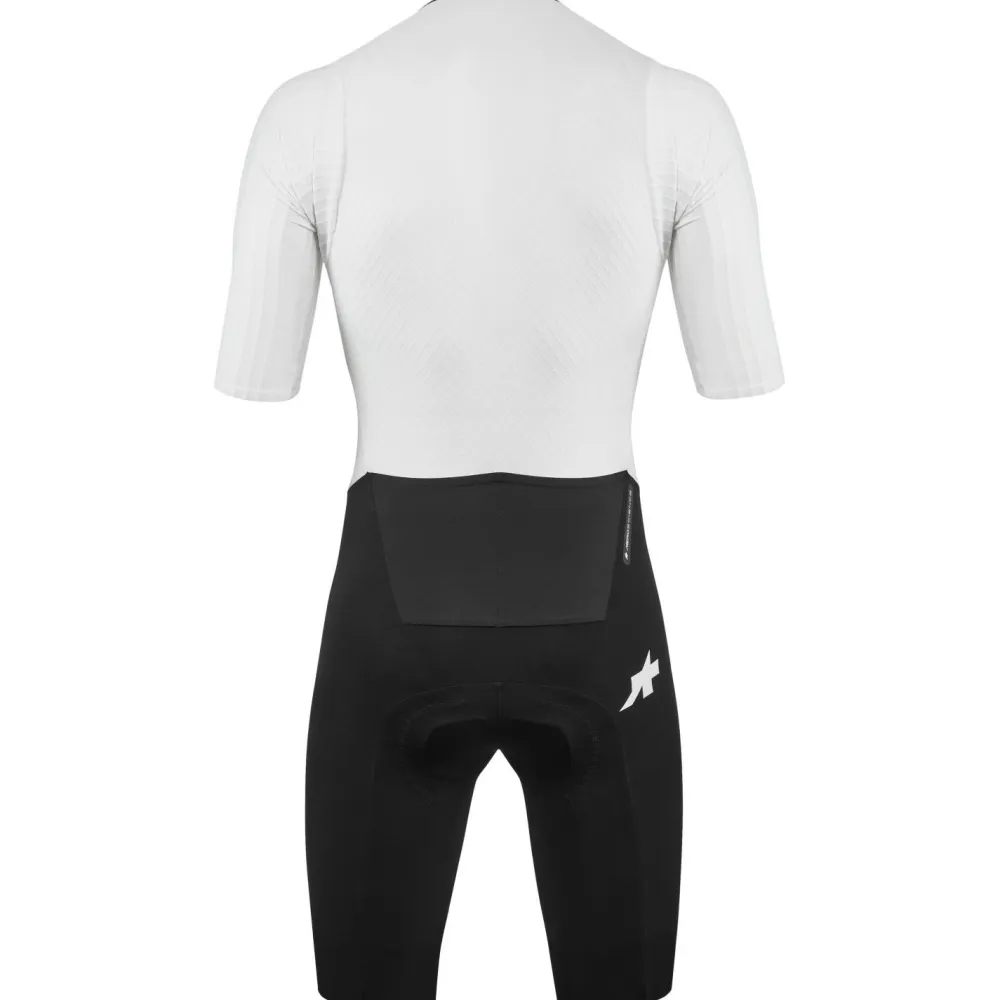 Dank der präzisen racingFit Konstruktion schmiegt sich der Assos EQUIPE RSR Bolide Speedsuit S11 wie eine zweite Haut an Deinen Körper. Die körperzonenspezifische Anordnung der Materialien sorgt für optimale Aerodynamik in vorgebeugter Rennposition, ohne Deine Atmung einzuschränken. Durchdachte Details wie tief positionierte Rückentaschen zur Reduzierung des Luftwiderstands sowie ein Zwei-Wege-Reißverschluss für einfache Toilettenpausen vor dem Start unterstreichen den kompromisslosen Rennfokus dieses Speedsuits.